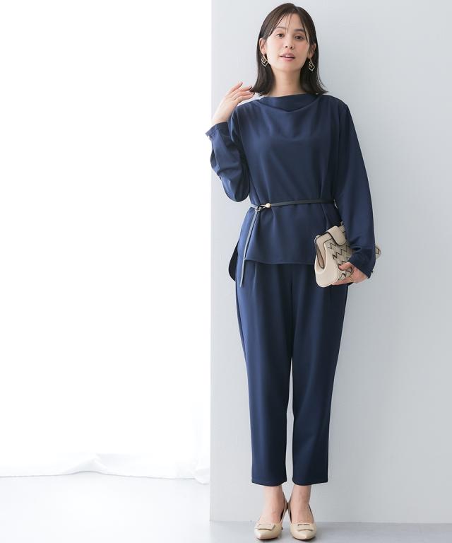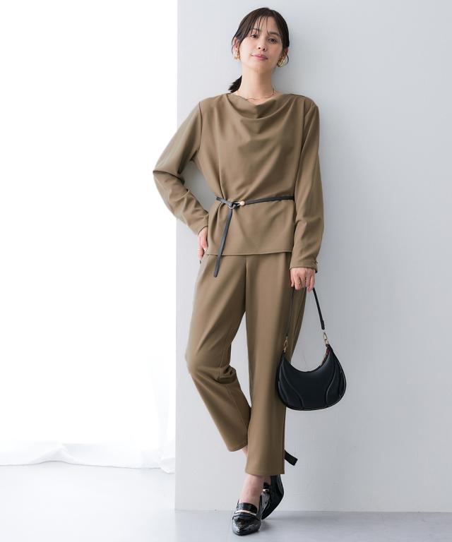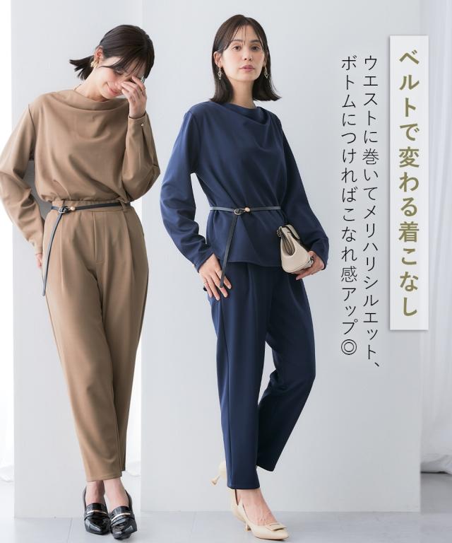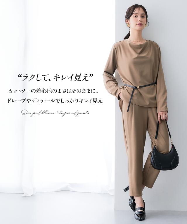 【OTOさんコラボ】セットアップ ベルト付きドレープブラウス+テーパードパンツ(速乾・UVカット)ニッセン nissen