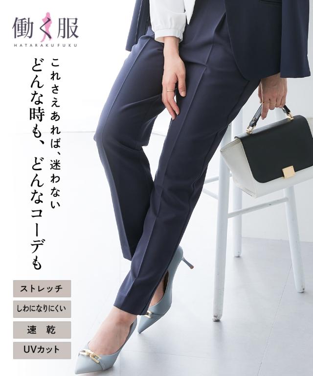 働く女性の為に”美シルエット”と”快適さ・着回し”にとことんこだわった万能パンツ作りました!働く女性の座談会で聞いた「こんなパンツが欲しかった!」を形にしました!大人気のセンタープレステーパードパンツをベースにアップデート!■デザイン・センタープレス×前タックで美脚&きちんと見えを両立・前開き仕様+ウエストインゴムでキレイ見えと快適を兼ね備えました・前タック入りで立体感のある脚ラインに。タックとポケット上部は縫い止めで浮かずにすっきりシルエットをキープ・360度、キレイ見えが叶うようにヒップは立体ダーツで自然にカバー、すっきり見せるシルエットに仕上げました・ポケット裏にあて布をプラスして下着のアタリが出にくい安心設計・裾はルイス始末でスラックスのような高級感。細部まで丁寧に仕立てました。■素材デイリー着用にうれしい、しわになりにくい・速乾・UVカット機能付きなめらかで伸縮性のある、オールシーズン着用できる落ち感素材を採用。ぽっこりお腹が目立ちにくく、ふくらはぎ部分も窮屈感なくすっきり履けます。洗濯機洗いOKも嬉しいポイント。■おすすめのスタイリングどんなトップスにも合わせやすくオフィスカジュアルにぴったり。〜働く服〜