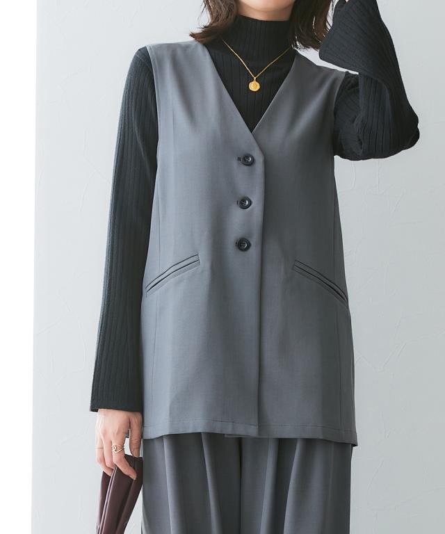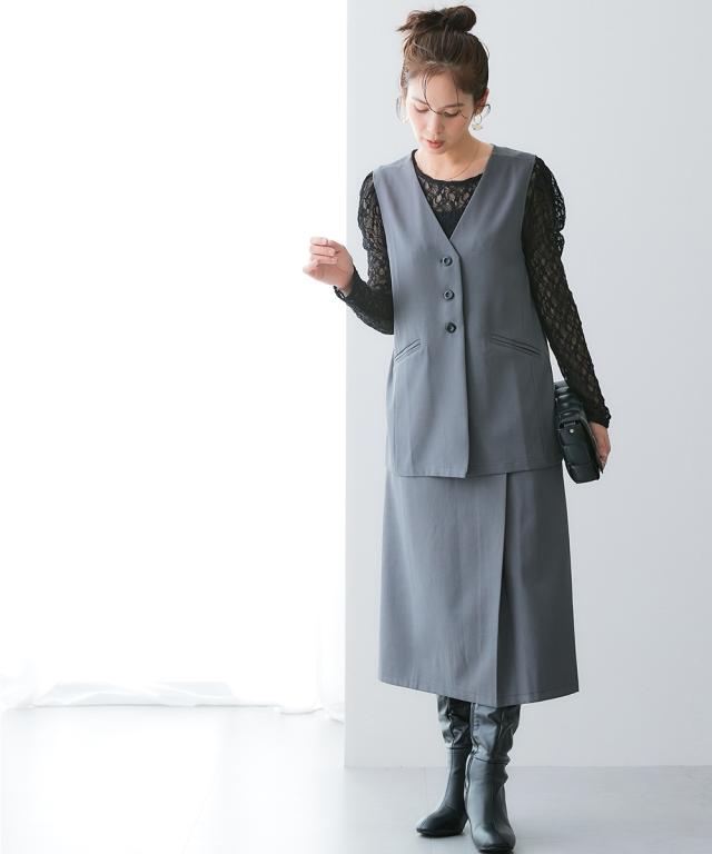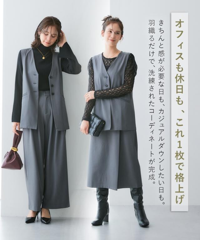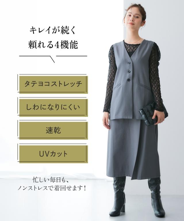 羽織るだけで洗練シルエット 毎日を快適にする”美人見えジレ”■デザイン・ウエスト周りをふんわりカバーするフレアシルエット。・ミドル丈だから、体型をさりげなく整えつつ脚長効果も ■素材キレイが続く頼れる4機能付き・タテヨコストレッチ・しわになりにくい・速乾・UVカット■おすすめのスタイリング同素材のボトムやスカート、ジャケットなど組み合わせできるカセット展開です。〜働く服〜nissenの通勤服専門ブランド。 仕事の日、休日、イベントの日まで、働く女性の毎日を商品やコンテンツを通して、自分らしく快適でいられる“働く服改革”をサポートします。