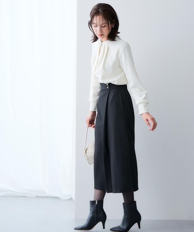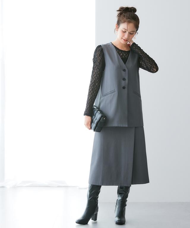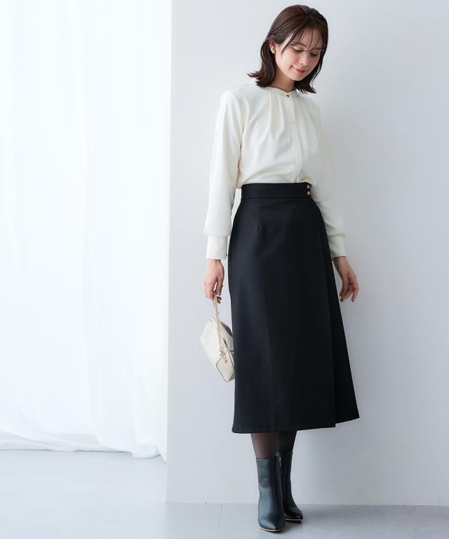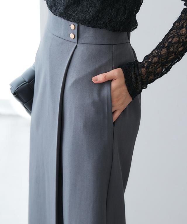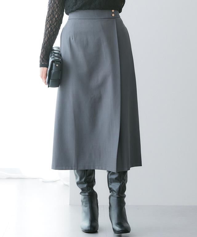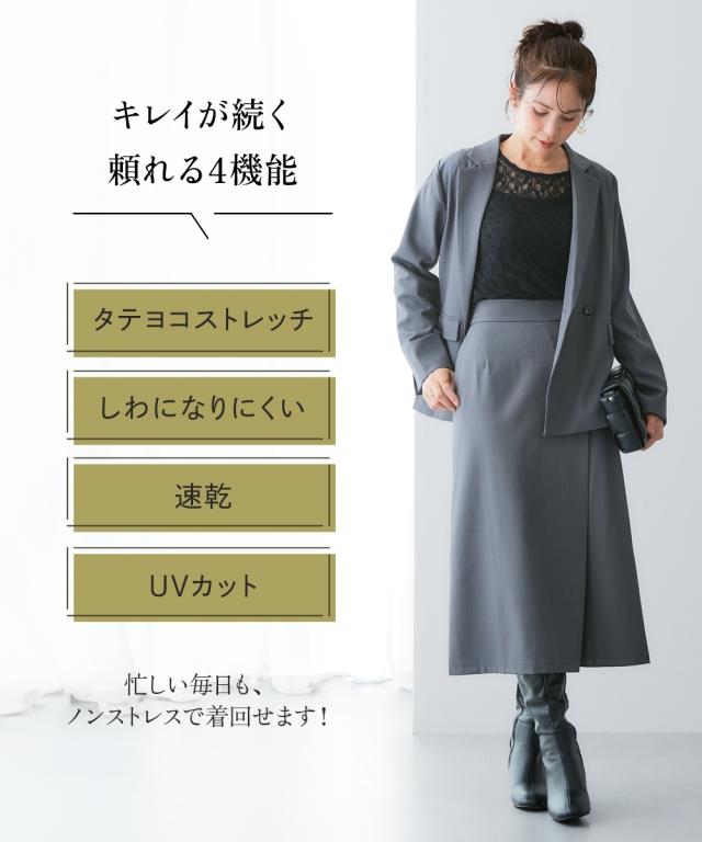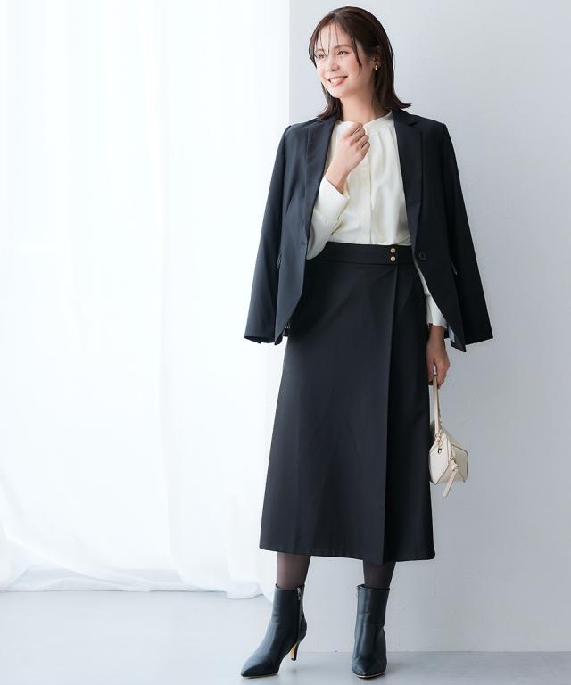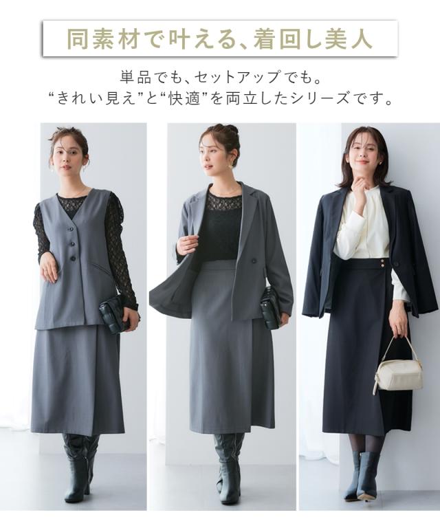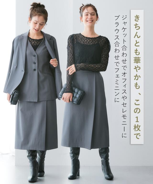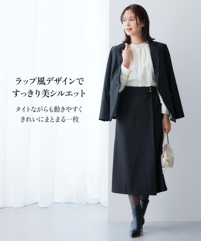 ラップ風デザインですっきり美シルエット■デザイン・タイトながらも動きやすくきれいにまとまる1着。・ウエスト部分の金ボタンがアクセント。・ラップ風デザインで、縦のラインを強調■素材キレイが続く頼れる4機能付き・タテヨコストレッチ・しわになりにくい・速乾・UVカット■おすすめのスタイリング同素材のジャケットやジレなど組み合わせできるカセット展開です。〜働く服〜nissenの通勤服専門ブランド。 仕事の日、休日、イベントの日まで、働く女性の毎日を商品やコンテンツを通して、自分らしく快適でいられる“働く服改革”をサポートします。