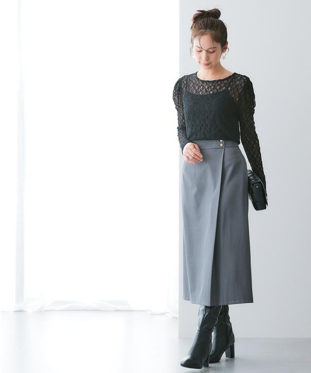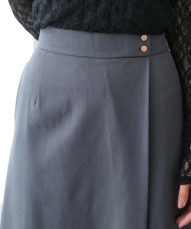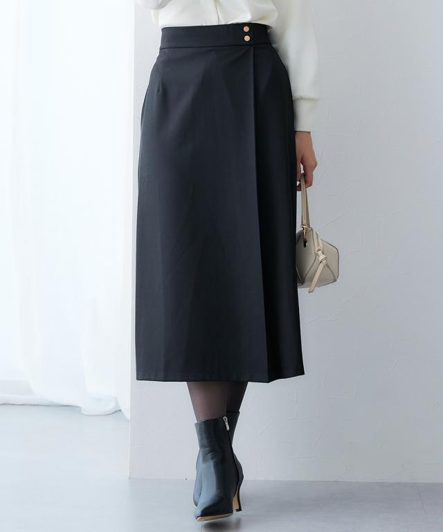 落ち感ドレープ素材ウエスト金ボタンラップ風タイトスカート(タテヨコストレッチ・しわになりにくい・速乾・UVカット)ニッセン nissen