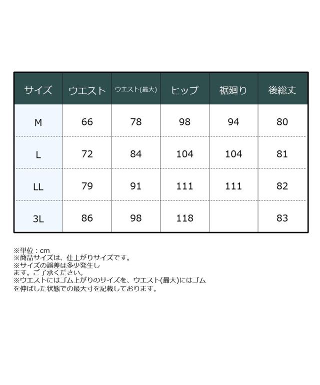品質=ポリエステル95%・ポリウレタン5%(織物) 原産国:中国製 備考:洗濯機OK ネット使用 ※単位:cm ※商品サイズは、仕上がりサイズです。 ※サイズの誤差は多少発生します。ご了承ください。 ※ウエストにはゴム上がりのサイズを、ウエスト(最大)にはゴムを伸ばした状態での最大寸を記載しております。