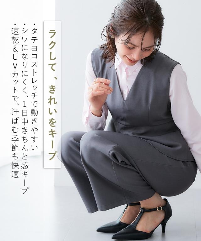しなやかな落ち感×美シルエットが叶うサロペットパンツ■デザイン・胸下から切替えたペプラムで、脚長効果 ・タテヨコストレッチなので窮屈感がなく動きやすい■素材キレイが続く頼れる4機能付き・タテヨコストレッチ・しわになりにくい・速乾・UVカット■おすすめのスタイリング同素材のジャケットと組み合わせできるカセット展開です。〜働く服〜nissenの通勤服専門ブランド。 仕事の日、休日、イベントの日まで、働く女性の毎日を商品やコンテンツを通して、自分らしく快適でいられる“働く服改革”をサポートします。