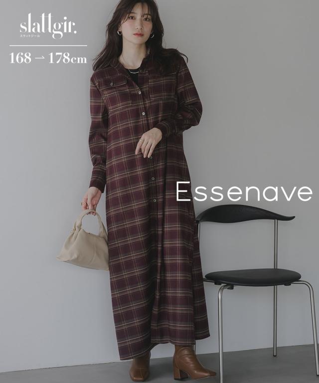 ワンピース ロング マキシ トールサイズ レディース 高身長 チェック柄 丈 シャツ Essenave 秋 産じょく 産後 インナー 下着 | M/L | ニッセン nissen