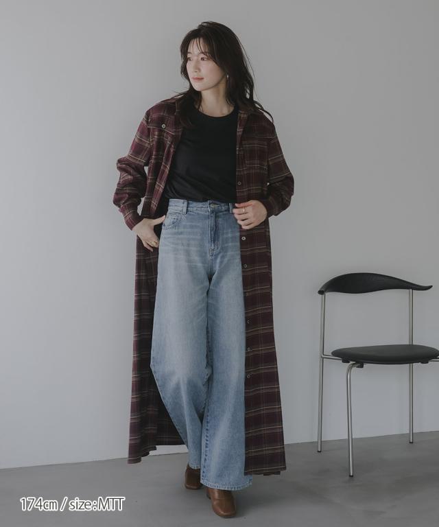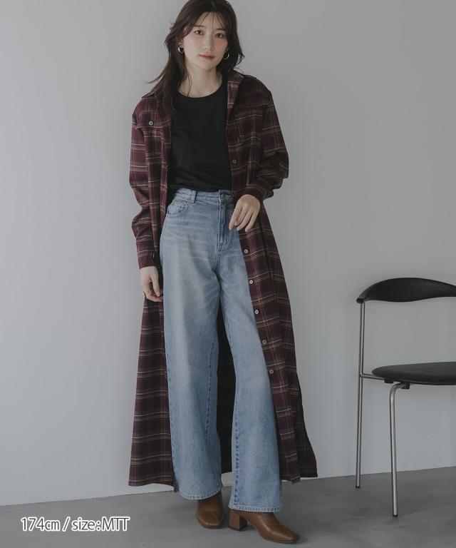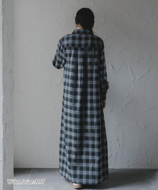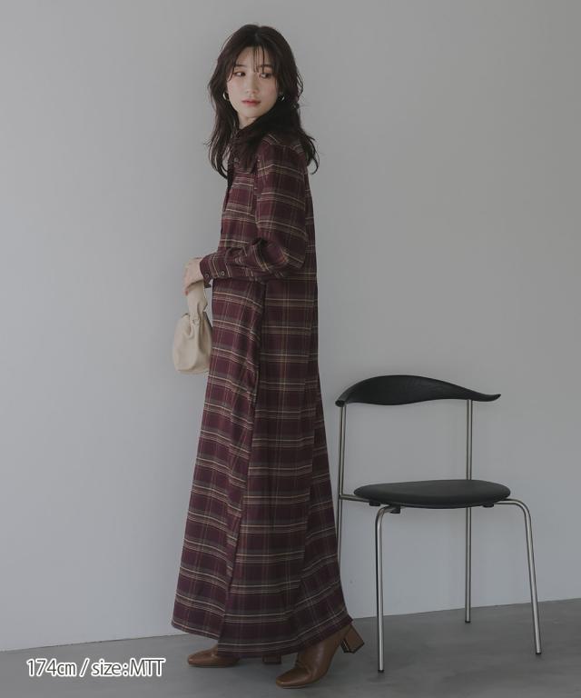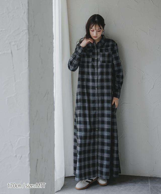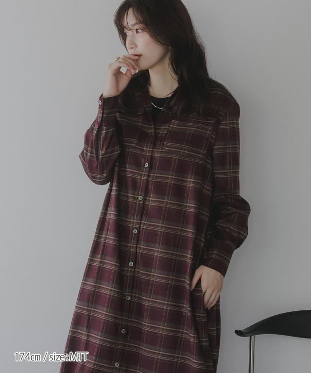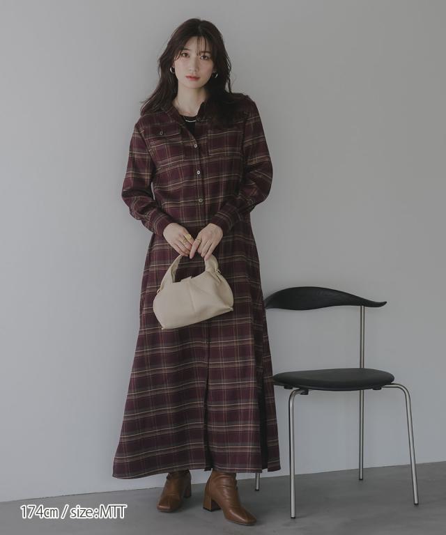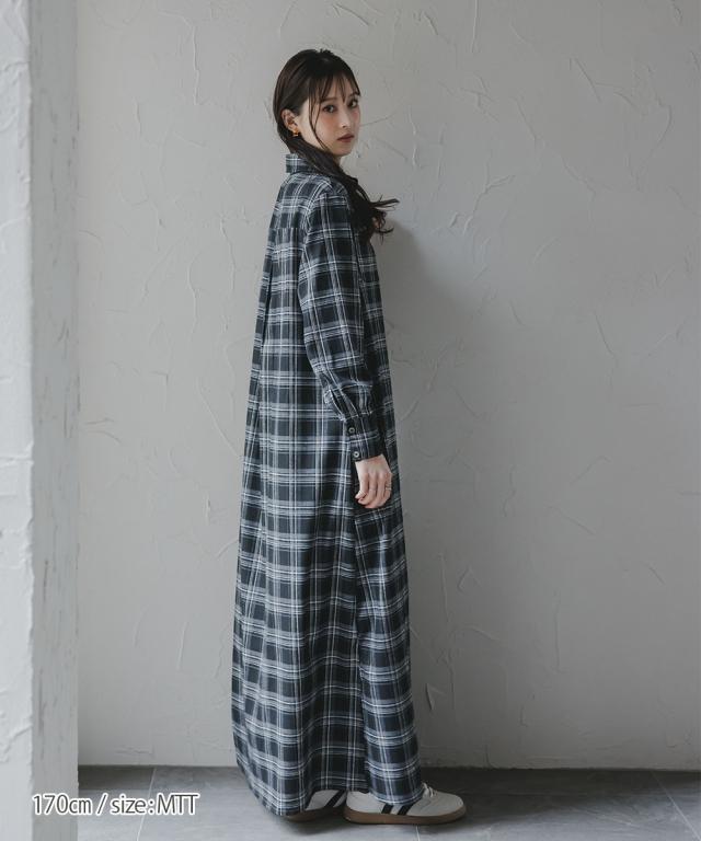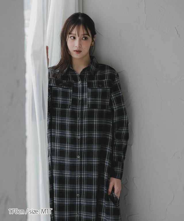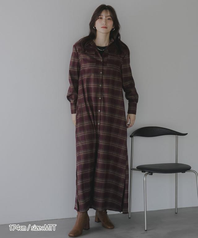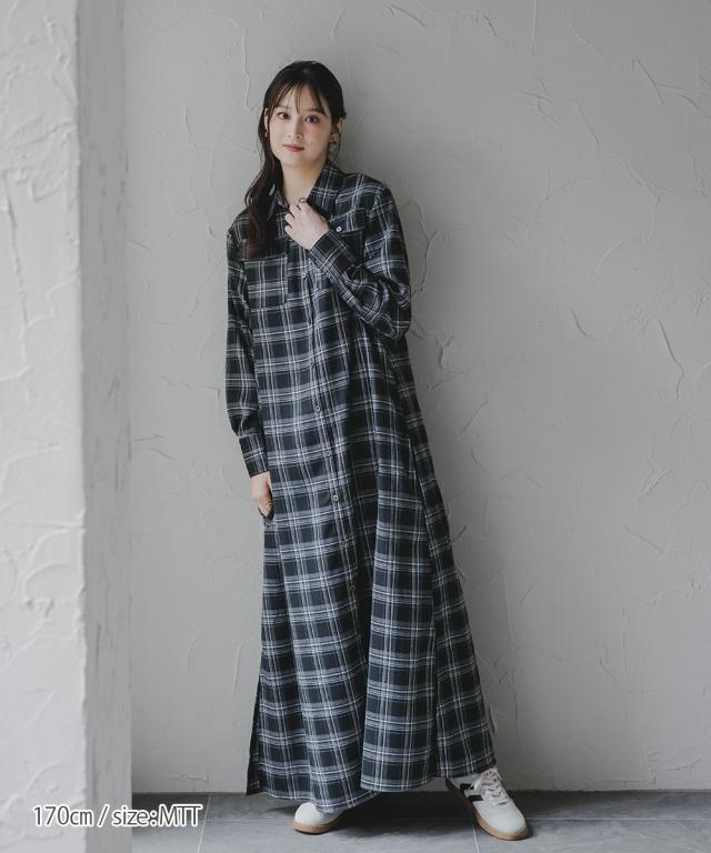 【高身長な方向け】ゆったりマキシ丈でチェック柄が可愛いシャツワンピース■デザイン・チェック柄が目を惹く、カジュアルなデザインです。・ワンピースとしても、羽織りとしても着用できる前ボタン開き。・胸ポケットがアクセントで、利便性も叶えるワンピース。■素材・秋にぴったりのちょうど良い厚みの生地。・大き目のチェック柄でも、落ち着いたカラーで大人可愛いが叶う一着。■おすすめのスタイリング・羽織りとして、Tシャツに合わせてカジュアルに。・一枚で着ても楽に決まるワンピース。・袖をまくるとこなれた印象に。