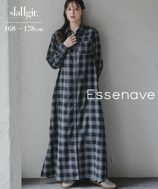 ワンピース ロング マキシ トールサイズ レディース 高身長 チェック柄 丈 シャツ Essenave 秋 産じょく 産後 インナー 下着 | LL/3L | ニッセン nissen