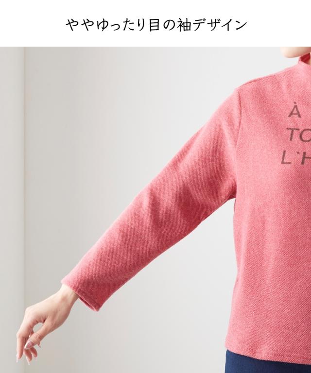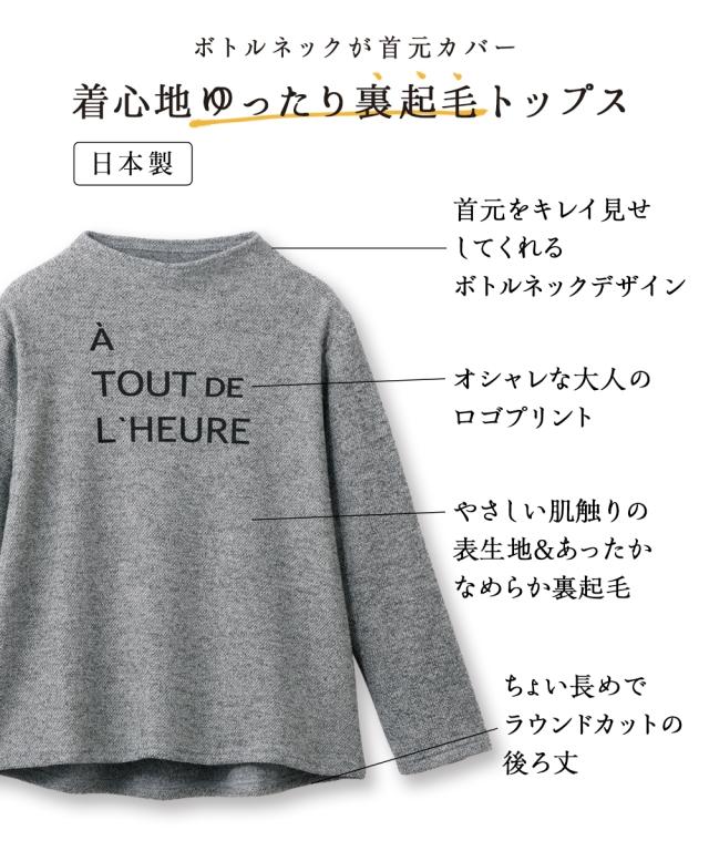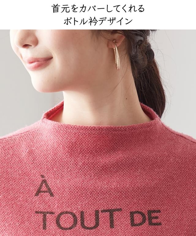 胸元のロゴが目を引く、ボトルネックプルオーバー。ふんわりとした肌触りの良い素材でメランジ調の見え方がオシャレ。裏側は起毛しており、冬に向けても長くご着用いただけます。ボトルネックで気になる首元もカバー。前プリント入りなのでアウターのインでも着こなしのアクセントになります。一枚でサマになるデザインは、カジュアルながらも上品な印象を与え、大人の女性にぴったりの一枚です。デニムと合わせてデイリーに、スカートと合わせてきれいめにと、幅広い着こなしが楽しめます。