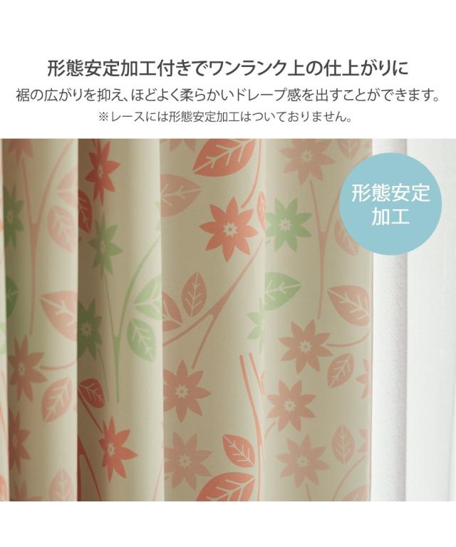 【カーテンセット】1級遮光カーテン(形態安定)&遮像・遮熱・UVカット・花粉キャッチ・ミラーレース4枚セットカジュアルフラワー