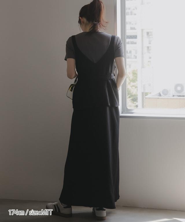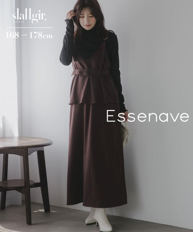 ジャンパースカート トールサイズ レディース 高身長 ペプラム デザイン ジャンパー スカート Essenave 秋 冬 大きいサイズ | LL/3L/4L/5L | ニッセン nissen