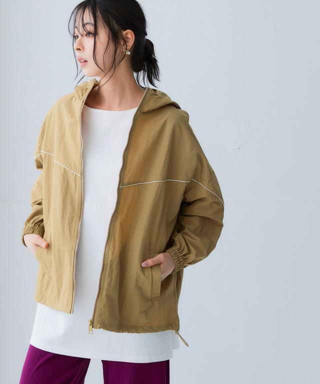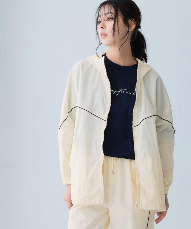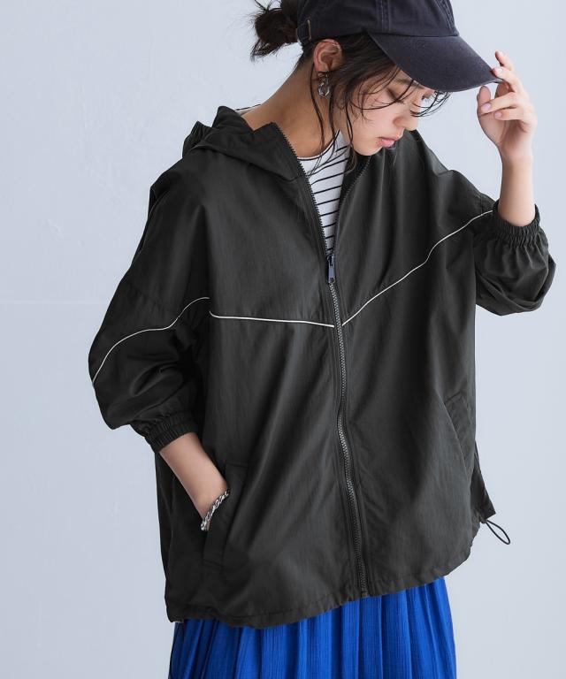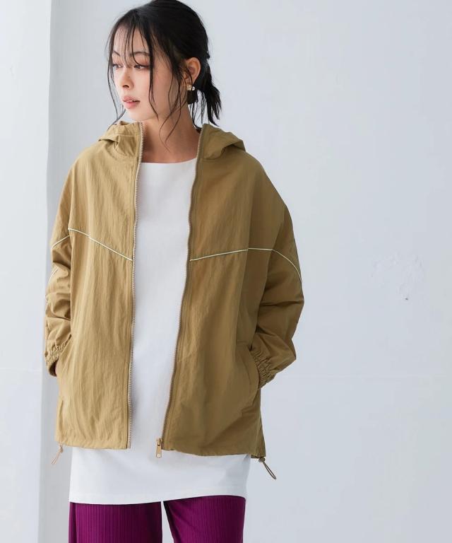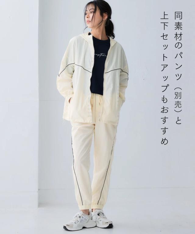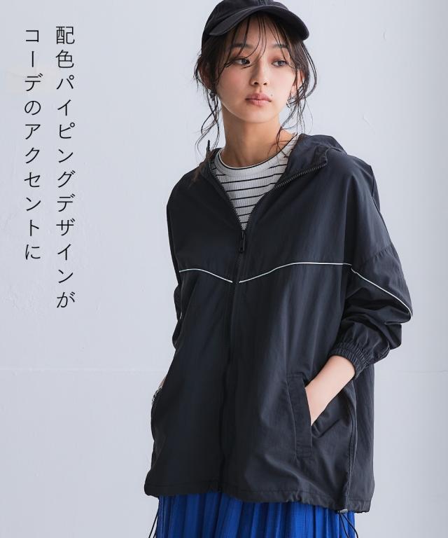スポーツラインにオリジナルのアクティブウェアが登場!アクティブなシーンだけでなく、おしゃれ着としても着用できます。■デザインナイロン素材のシップアップジャケット。パイピングデザインがおしゃれでコーデのアクセントになります。袖口はゴム仕様なのでプッシュアップアレンジも可能です。ポケットが両脇についているので便利。裾にはドロストが付いているのでお好みのシルエットで着用できます。ジップアップタイプなので開けて着用しても閉めて着用してもコーデが決まります。雨風がしのげるフード付き。■素材軽量で動きやすく、快適に着用できます。はっ水機能付きのナイロン素材なので水に濡れても安心。UVカット機能付きで日焼け対策もばっちり。ジムやスポーツなどのアクティブなシーンやリラックスシーン、街中でのタウンユースコーデとしてなど幅広く着用できます。■コーディネートセットアップで着用できます。デニムやスカートなどお持ちのアイテムで簡単にコーディネートできます。
