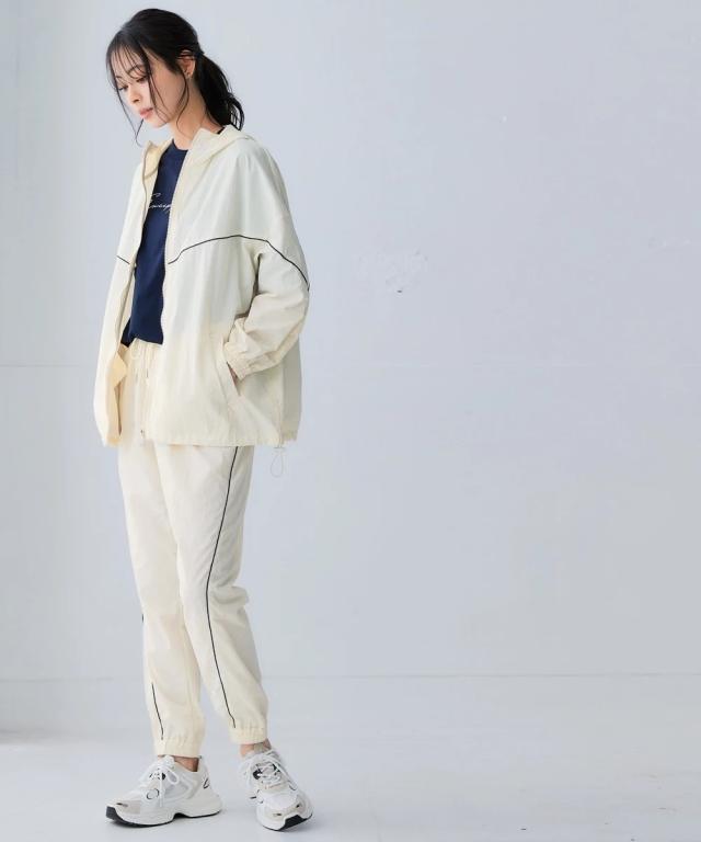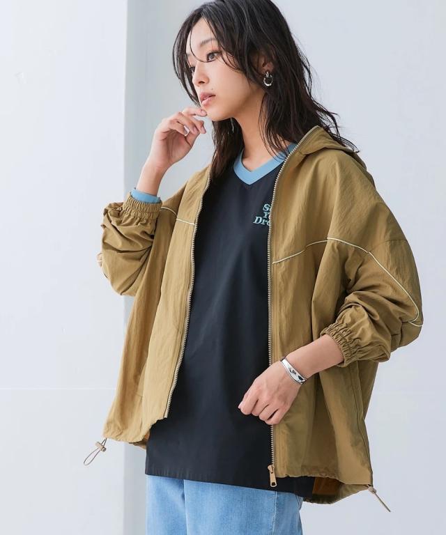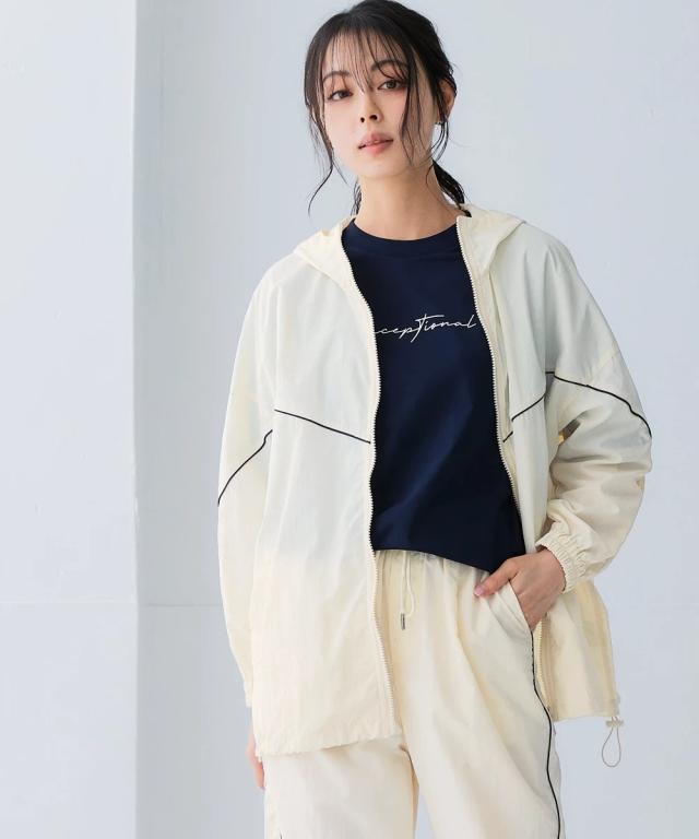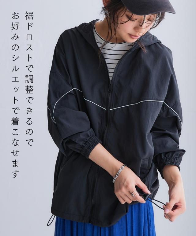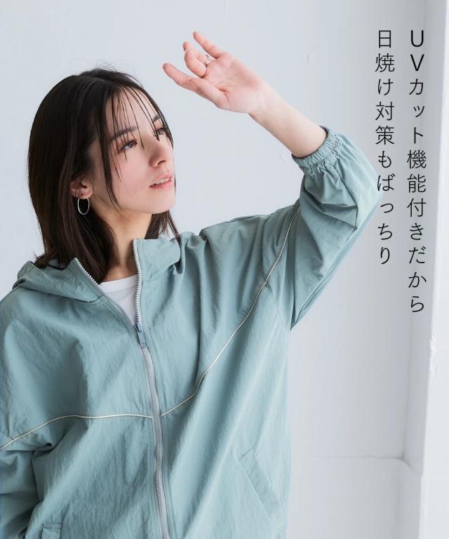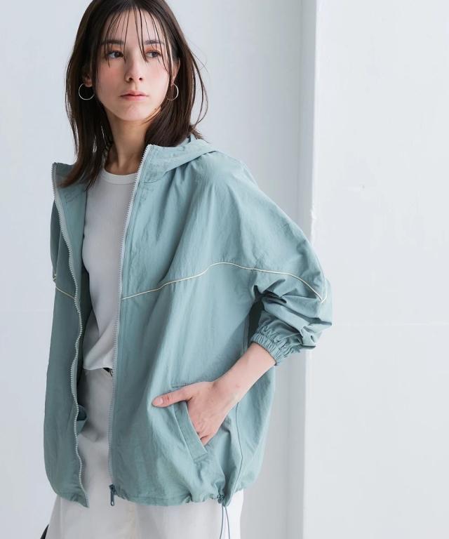 スポーツラインにオリジナルのアクティブウェアが登場!アクティブなシーンだけでなく、おしゃれ着としても着用できます。■デザインナイロン素材のシップアップジャケット。パイピングデザインがおしゃれでコーデのアクセントになります。袖口はゴム仕様なのでプッシュアップアレンジも可能です。ポケットが両脇についているので便利。裾にはドロストが付いているのでお好みのシルエットで着用できます。ジップアップタイプなので開けて着用しても閉めて着用してもコーデが決まります。雨風がしのげるフード付き。■素材軽量で動きやすく、快適に着用できます。はっ水機能付きのナイロン素材なので水に濡れても安心。UVカット機能付きで日焼け対策もばっちり。ジムやスポーツなどのアクティブなシーンやリラックスシーン、街中でのタウンユースコーデとしてなど幅広く着用できます。■コーディネートセットアップで着用できます。デニムやスカートなどお持ちのアイテムで簡単にコーディネートできます。