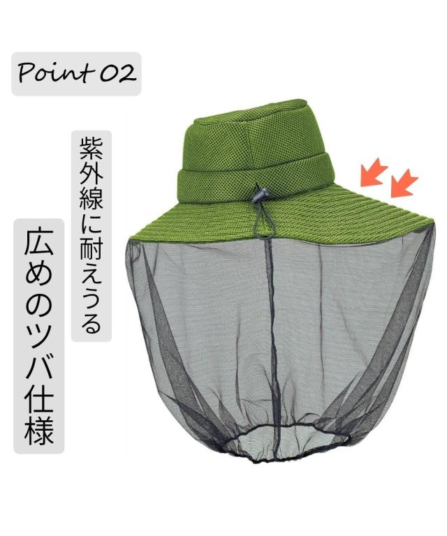 メッシュ付きクールハットで、蒸れを防ぎながら風を通し、日差しと虫から顔周りを守ります。頭囲55〜58cmに対応し、本体とメッシュ部はポリエステル100%、頭部側面にはクールマックス糸を使用。手洗い可能でお手入れも簡単です。ハイキングやガーデニング、キャンプなど、様々なシーンで活躍。※本製品は補助的な機能を持つため、ハチなど危険な虫への対策としてはご使用いただけません。