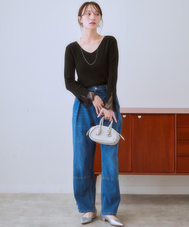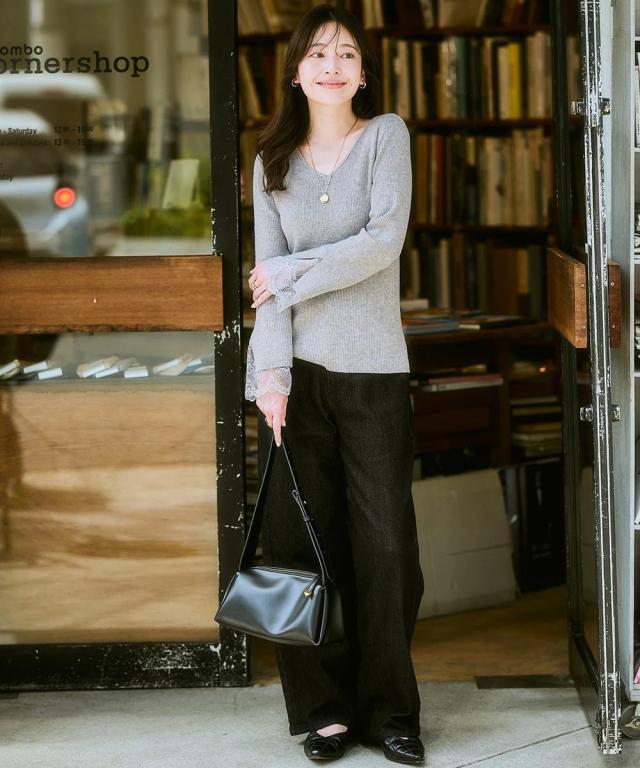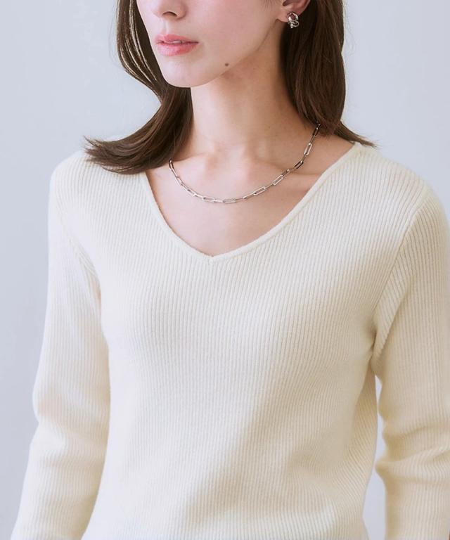 一枚で着映えする、ふんわりモチモチのVネックリブニット。スリット入りの袖口にレイヤードされた繊細なレースがさりげなく色っぽさを添え、シンプルながらも周りと差がつく一着。毎日のコーディネートに華やぎと上品さをプラスします。シンプルな形でも洗練された大人トレンドスタイルを楽しみたいあなたへ。■デザインVネックのリブニットは首元をすっきりと見せ、女性らしいデコルテラインを強調。袖口のレースは、上品な透け感と繊細な柄で、さりげない色っぽさを演出します。リブ素材が体に程よくフィットし、気になる二の腕やウエスト周りを自然にカバー。カジュアルすぎずスタイリッシュな大人の品性を感じさせる着こなしが叶います。■素材ふんわりとした柔らかさと、モチモチとした弾力性が特徴で、やみつきになる肌触り。袖口のレース部分は伸縮性があり、肌あたりも優しく快適な着心地です。■おすすめのスタイリングシンプルながらも存在感のあるリブニットは、同系色のワイドパンツやロングスカートと合わせて大人のワントーンコーデに。カジュアルなデニムと合わせても、袖口のレースが女性らしさを引き立て、普段使いからお出かけまで幅広く活躍します。秋冬のクローゼットにぜひ加えた
