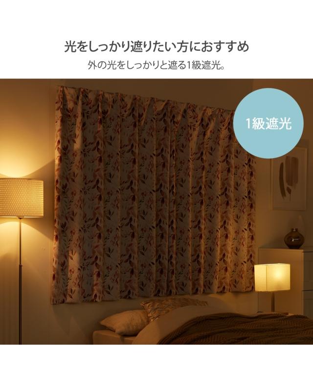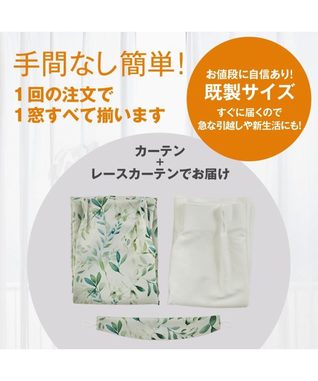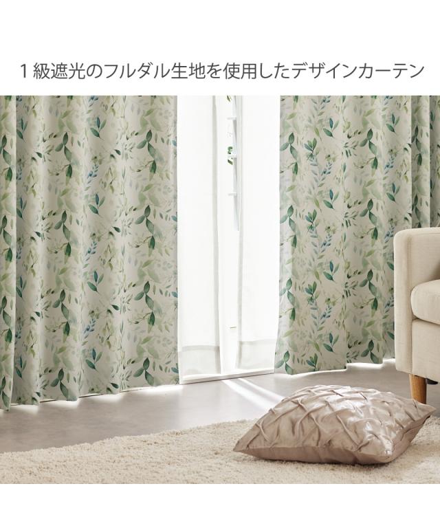 【カーテンセット】1級遮光カーテン(形態安定)&遮像・遮熱・UVカット・花粉キャッチ・ミラーレース4枚セット水彩リーフ