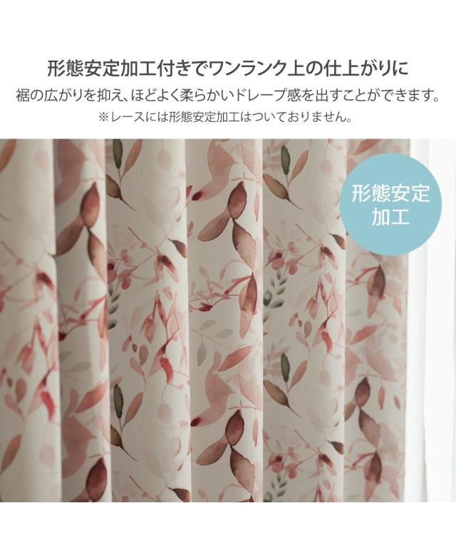 カーテンレース セット 4枚組 カーテン 1級遮光 形態安定 &遮像 遮熱 UVカット 花粉キャッチ ミラー レース 4枚セット|水彩リーフ ニッセン nissen