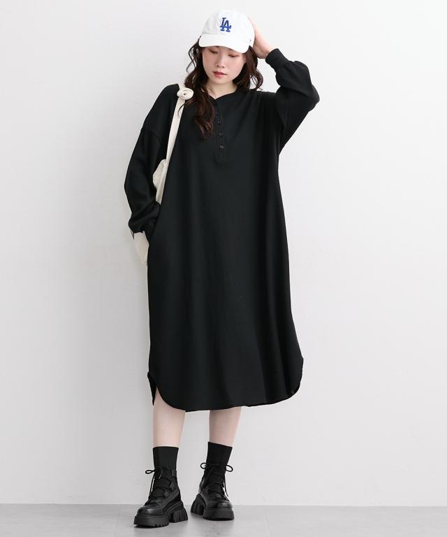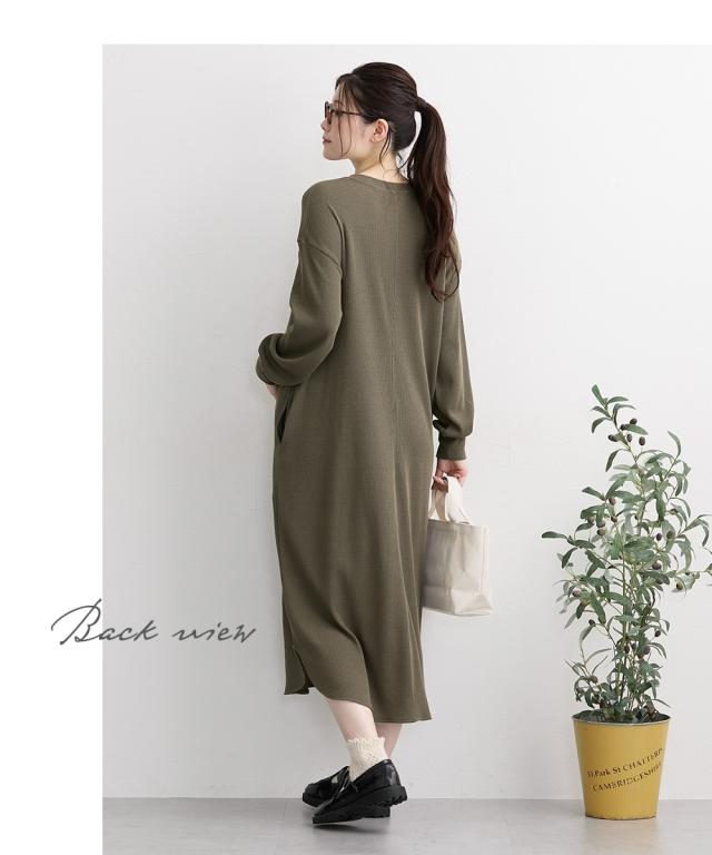 やわらかなワッフル素材の長袖ワンピースです。■design・体型をカバーするゆったりしたシルエットで、リラックス感たっぷりのワンピース・お出かけはもちろん、ルームウェアとしても使えます。・シンプルな無地ながら、ワッフル素材の凹凸感がアクセント・裾にはカーブスリット入りでこなれ感を演出します。■point・胸下付近までボタンがあるので、ボタンを開けてスムーズに授乳ができます。・袖口がリブになっているので腕をまくりやすく、家事や育児の際に便利です。・両脇にポケットがあり、スマホやハンカチなどを入れられます。■fabric・凹凸があり、さらっと気持ちいいワッフル素材を使用。やわらかくてラクな着心地です。