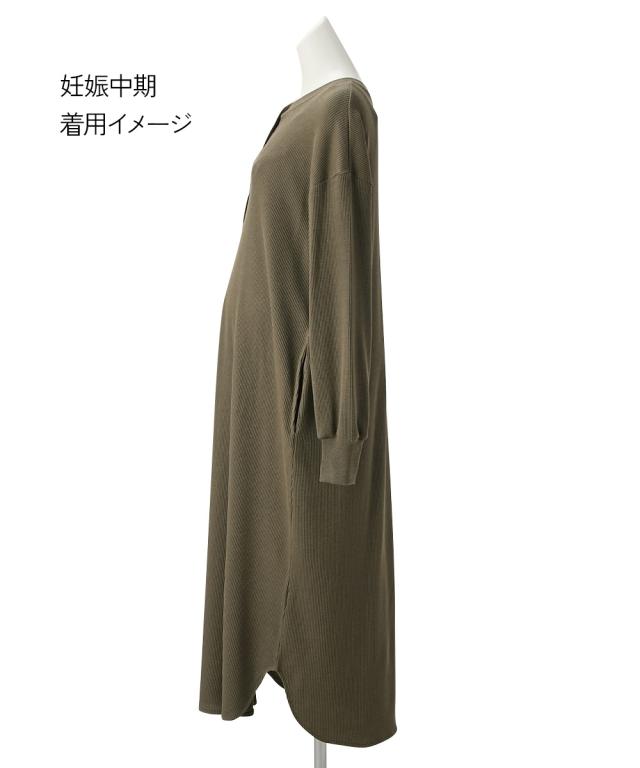 【マタニティウェア・授乳服】やわらかワッフル リラックス長袖ワンピース(産前・産後)