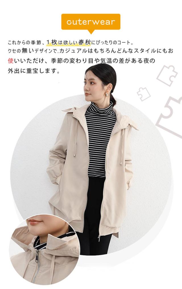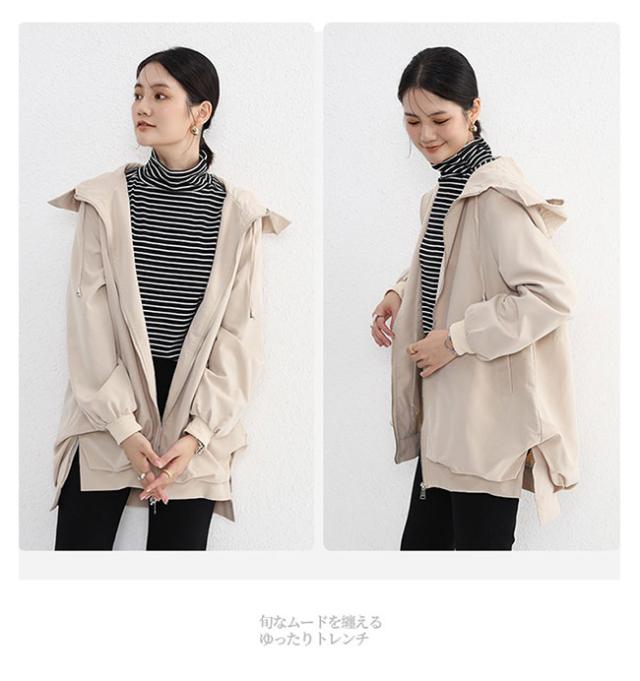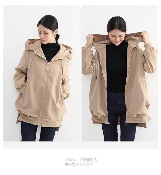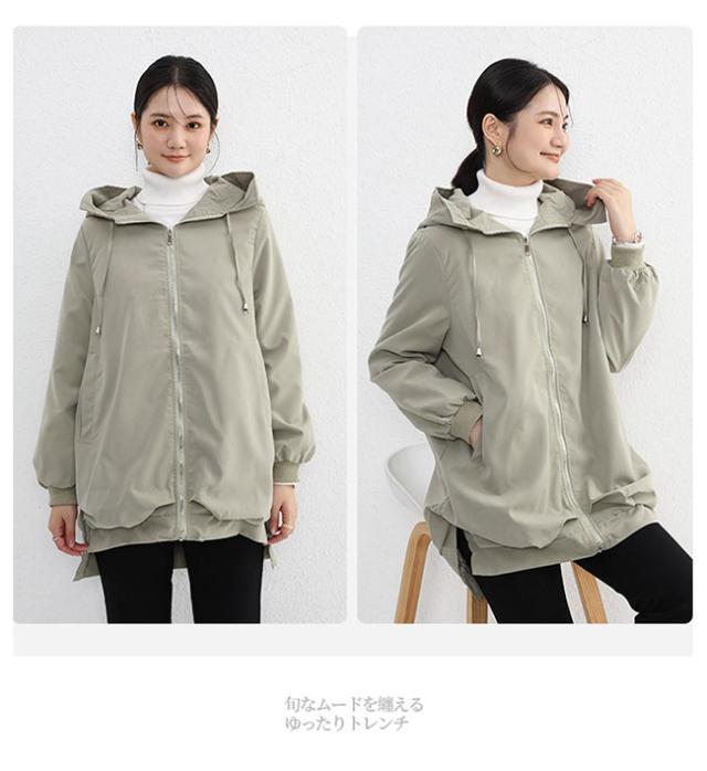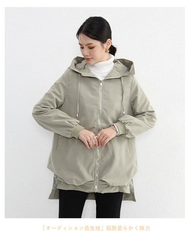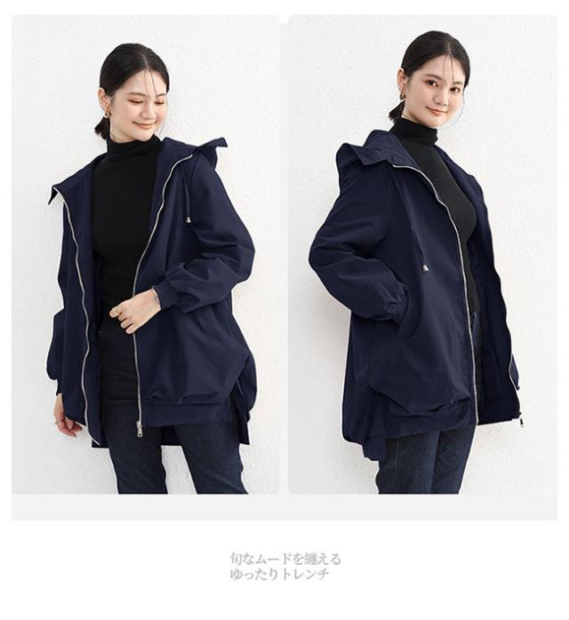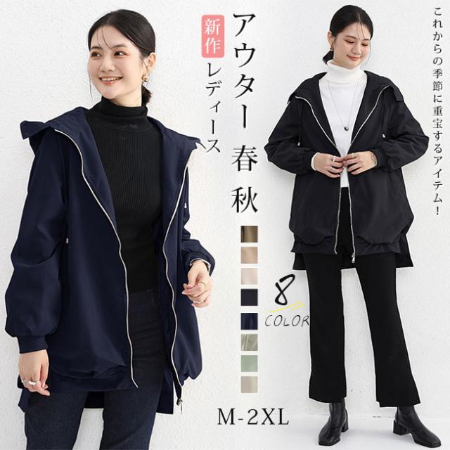 マウンテンパーカー アウター ブルゾン レディース アウター 長め丈 春 秋 ジャケット ファスナー 裏地あり フード付き春服 秋服