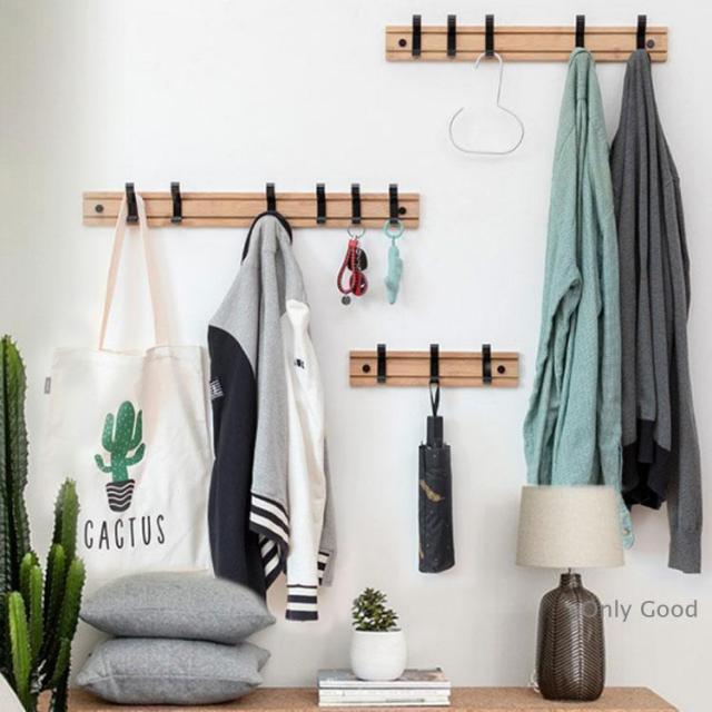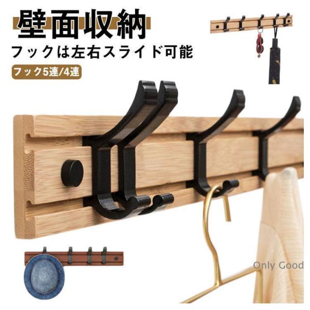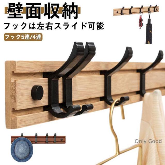 5連 ウォールハンガー コートハンガー 壁掛け フック 木製 4連 壁面収納 可動式フック 壁掛けハンガー 玄関収納 洋服掛け コート掛け ランドセル