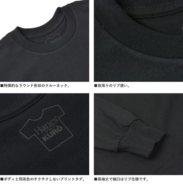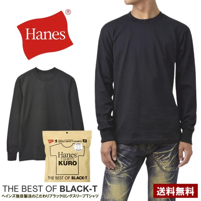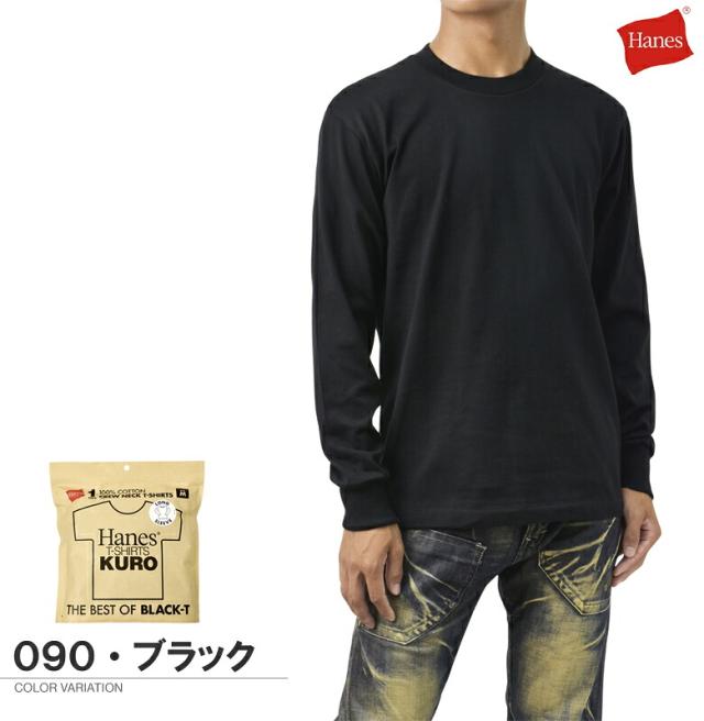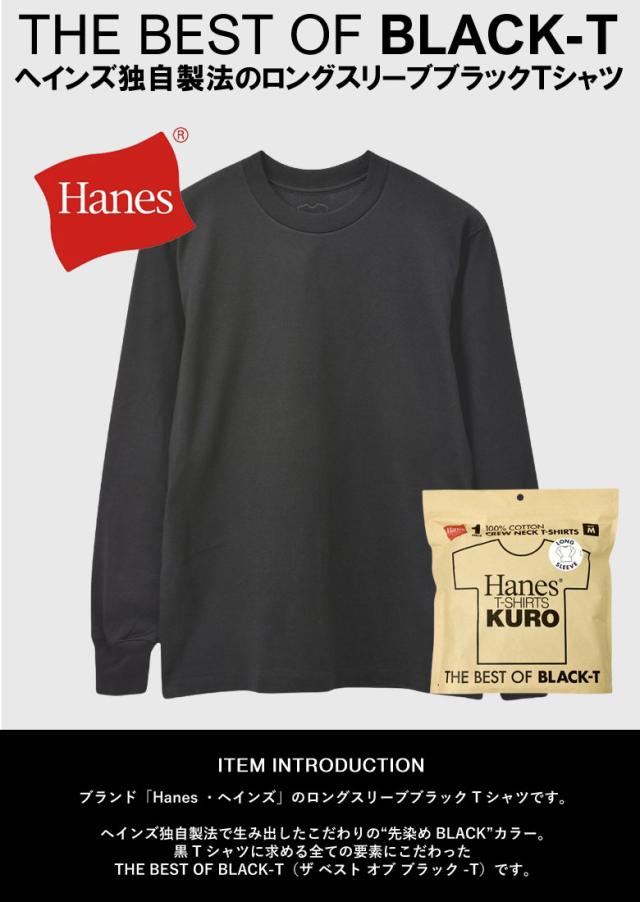 Tシャツ 長袖 クルーネック Hanes ヘインズ KURO ロングスリーブ THE BEST OF BLACK-T 7オンス コットン100% 黒T クロ HM4-C201 ブランド 正規品【D1E】【パケ1】【A】