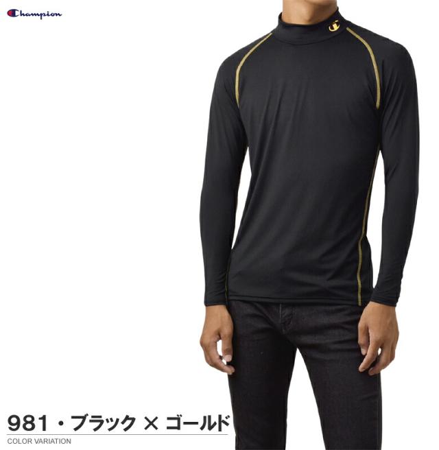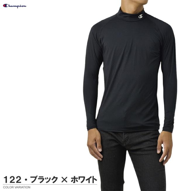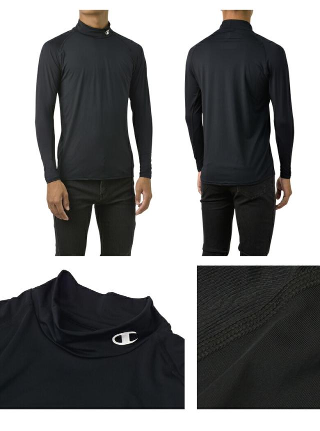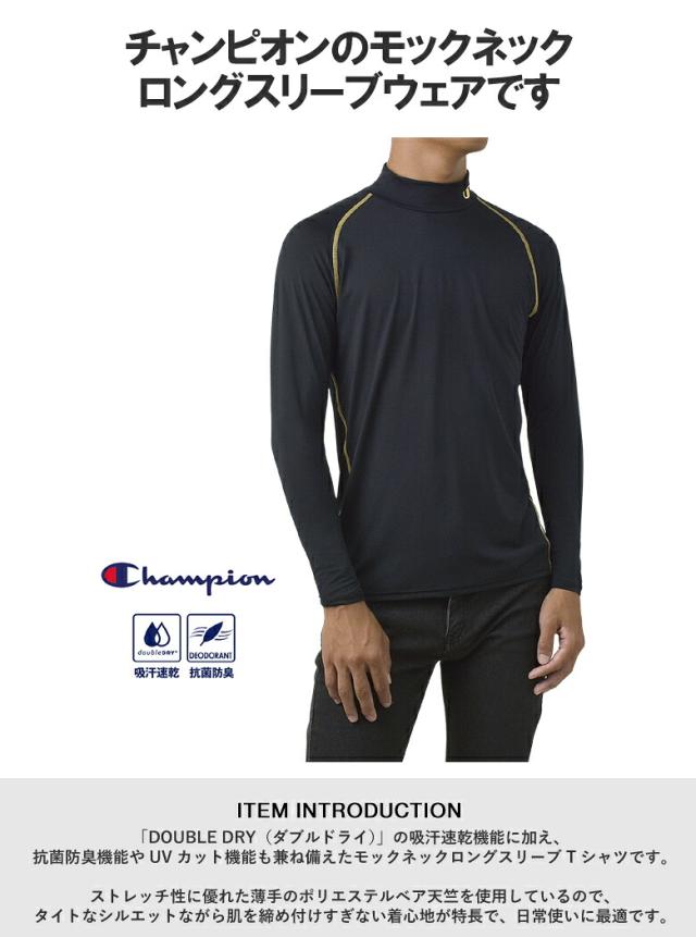 吸汗速乾 Tシャツ 長袖 メンズ ハイネック ワンポイント Champion チャンピオン モックネック ロングスリーブ DOUBLE DRY 抗菌防臭 UVカット アンダーウェア ブランド 正規品 CM4HY261【E4C】【パケ2】