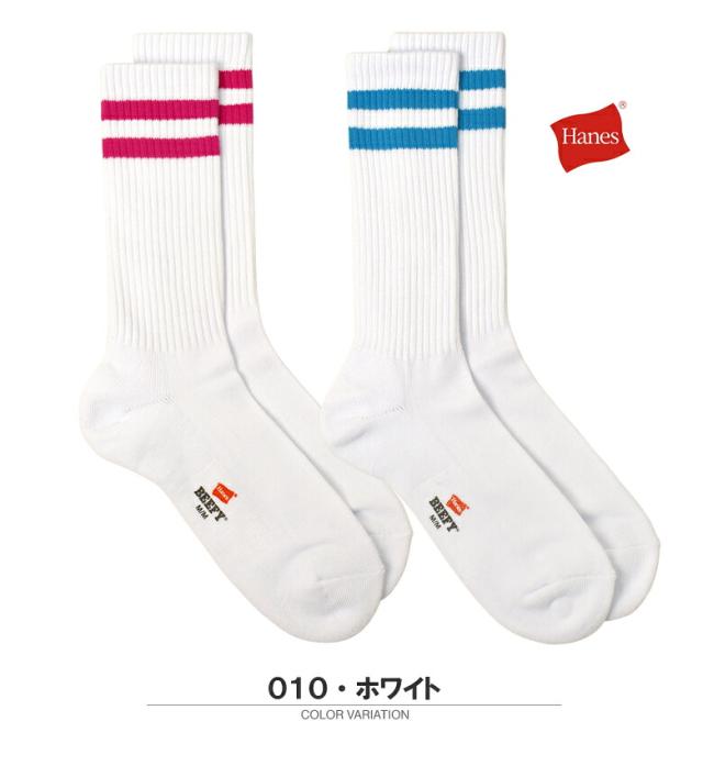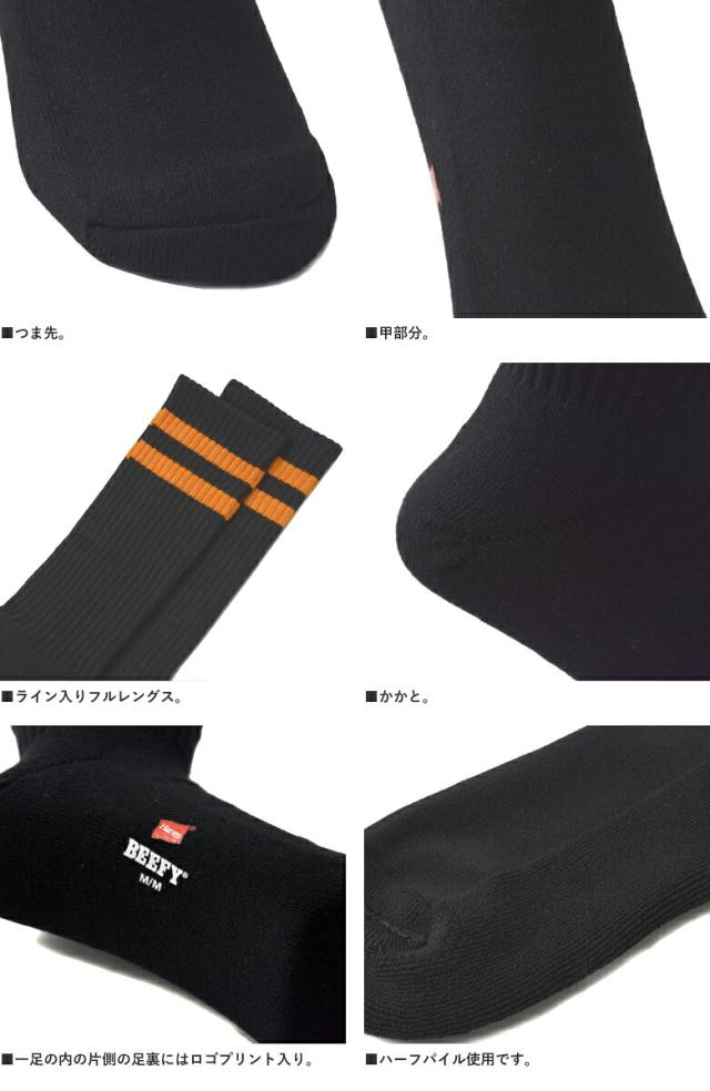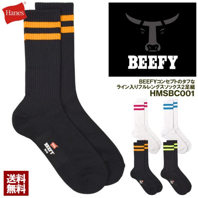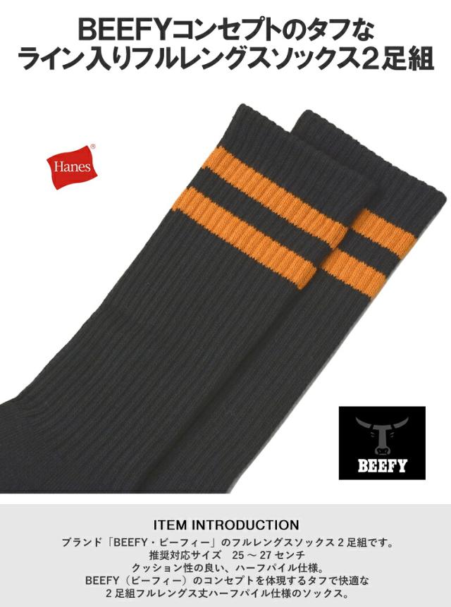 靴下 メンズ ソックス BEEFY ビーフィー 2足組 フルレングスソックス ライン入り ハーフパイル Hanes ヘインズ 2P ブランド 正規品 HMSBC001【Z3F】【パケ1】