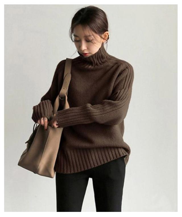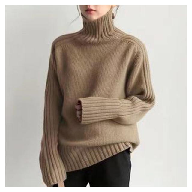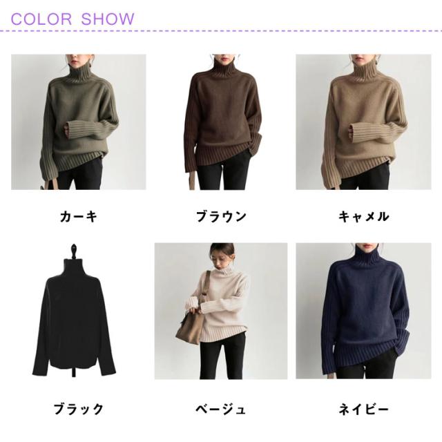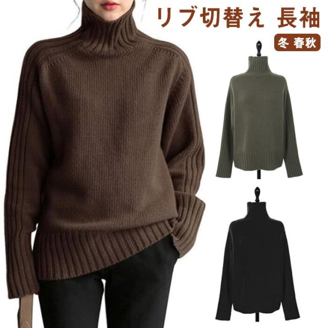 ニットトップス ハイネックリブニット レディース ニットセーター リブ切替え 長袖 フリーサイズ ハイネックニット ハイネック トップス 秋 冬 春秋 カーキ ブラウン キャメル ブラック ベージュ ネイビー