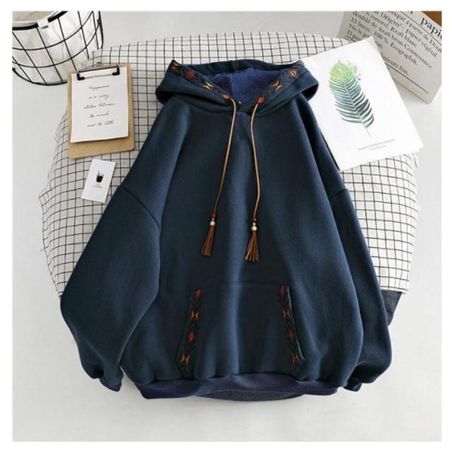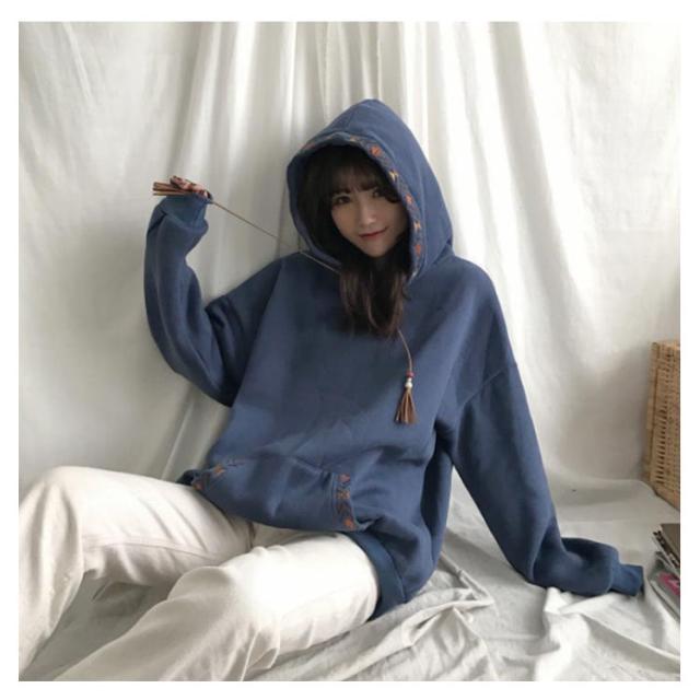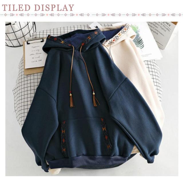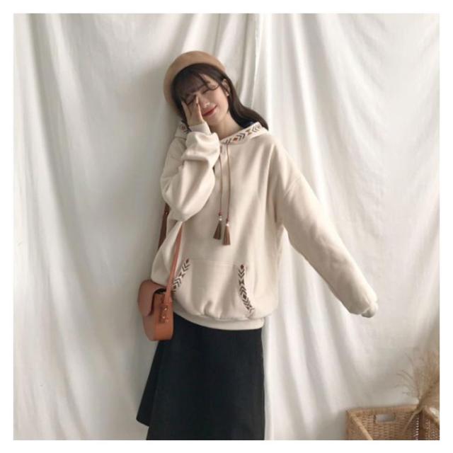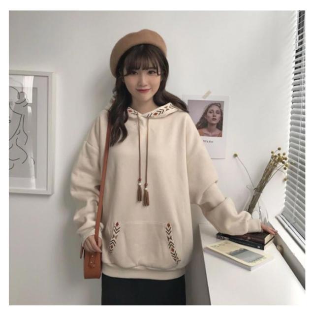 スウェットパーカー レディース 長袖 トレーナー フード付き 秋 冬 トップス パーカー パーカープルオーバー 刺? ゆったり おしゃれ 春 秋 冬 カジュアル フリンジ付き かわいい ポケット 裏起毛 体型カバー M L XL 2XL
