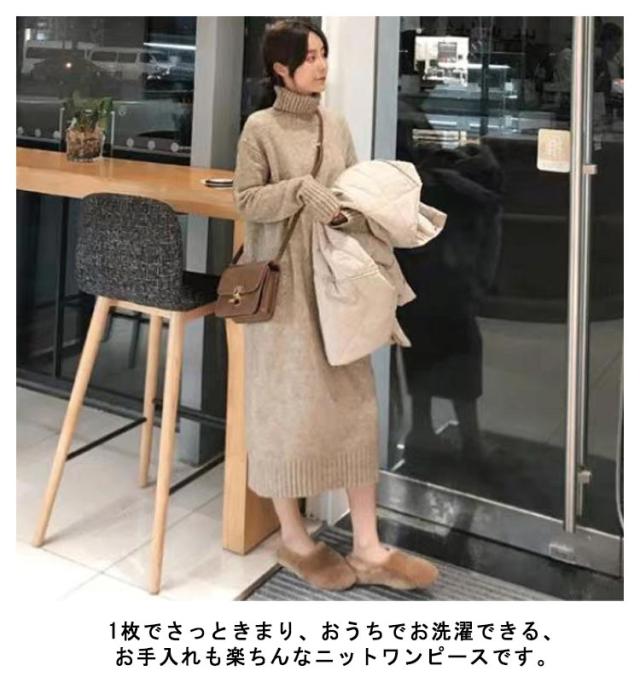 ニットワンピース ロング ワンピース レディース ロングワンピース タートルネック マキシ丈 上品 シンプル ブラック ベージュ 2025秋冬 マキシニットワンピース レディース 秋 冬 ワンピース ニットワンピー