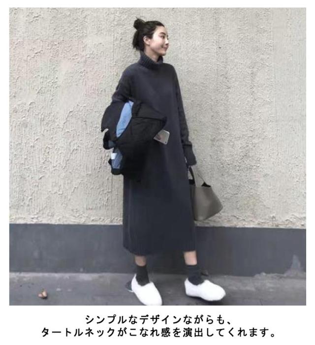 | 大人のふんわりニットワンピ。 シンプルなデザインながらも、タートルネックがこなれ感を演出してくれます。 1枚でさっときまり、おうちでお洗濯できる、お手入れも楽ちんなニットワンピースです。 ゆったりとしたデザインですがカジュアルになりすぎない着こなしが楽しめます。 | |