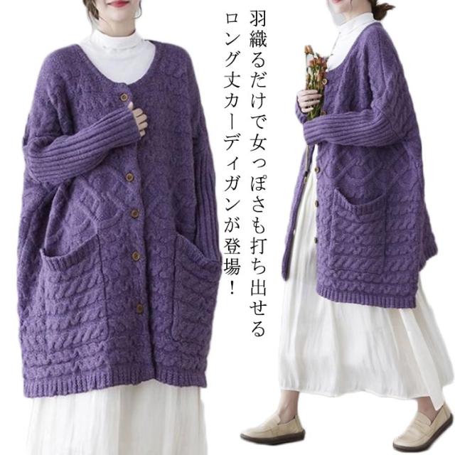 送料無料 ロングニットカーディガン ローゲージニット カーディガン レディース トップス アウター 羽織り 長袖 前開き ゆったり 秋 冬 春 オーバーサイズ 厚手 ボリューム カーデ コート ライトアウター コーディガン ロング丈