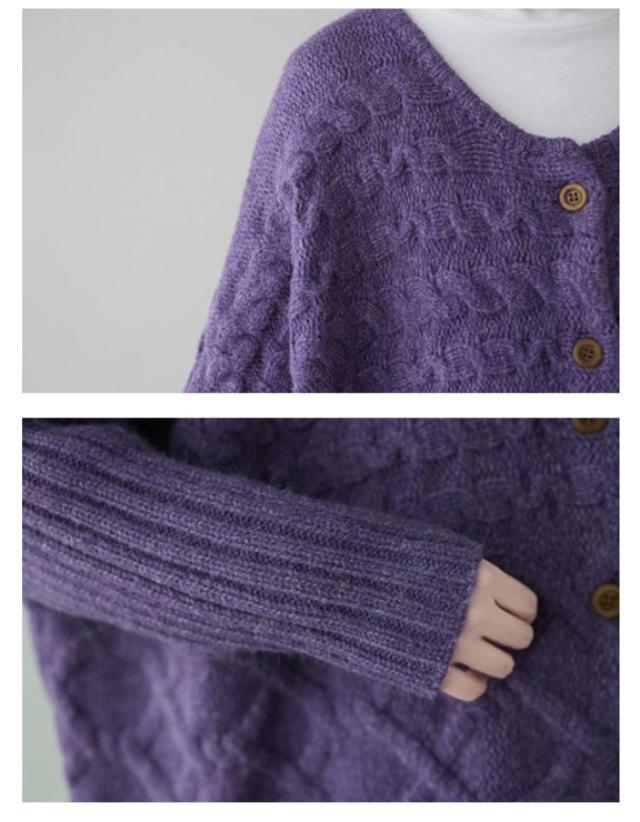 | 羽織るだけで女っぽさも打ち出せるロング丈カーディガンが登場! 縦長効果でこなれ感漂う大人なバランスを作り出してくれます♪ ふっくらと厚みのあるボリューム感が暖か&かわいい! ボタン付きデザインで着こなしにアクセントをプラス。ボタンを留めて着ても可愛い、開きすぎないネックがポイント。 オーバーシルエットで気になるボディラインも包み込み、女性らしい華奢見せ効果が期待できます。 ざっくりルーズに羽織れるシルエットがトレンド感たっぷりです。アウター感覚で着られるコーディガンとして。 季節の変わり目に大活躍!一枚は欲しいニットカーディガン。 | |