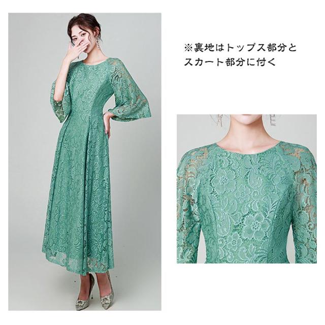 結婚式 ワンピース パーティードレス 花柄 レース ロングドレス 総レース シアー 透け感 フレア袖 オケージョン 春 夏 秋 冬 パーティドレス 二次会 謝恩会 成人式 同窓会 体型カバー 服装 入学式 卒業式