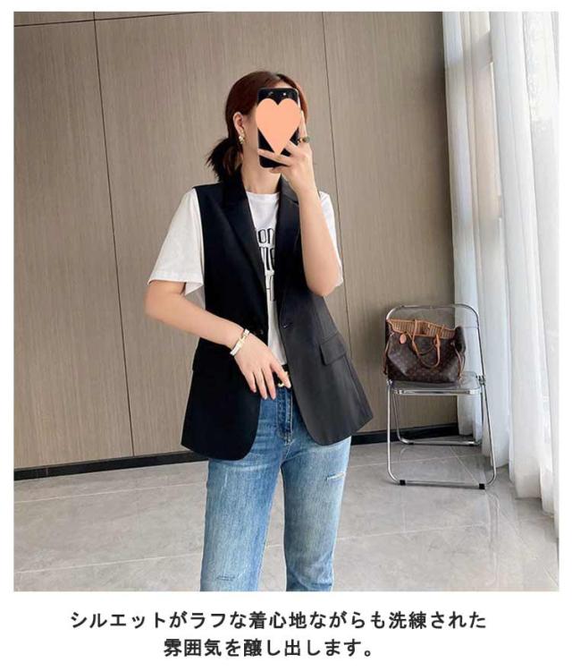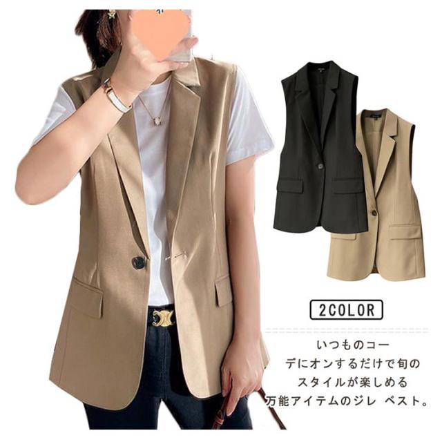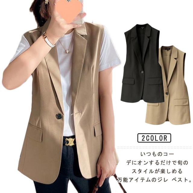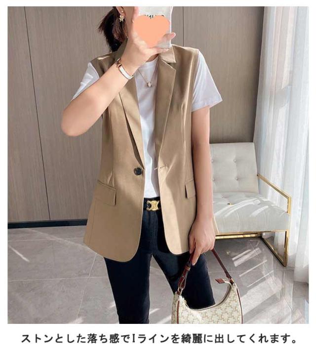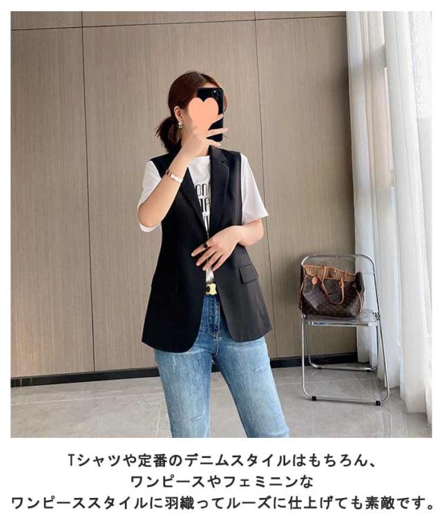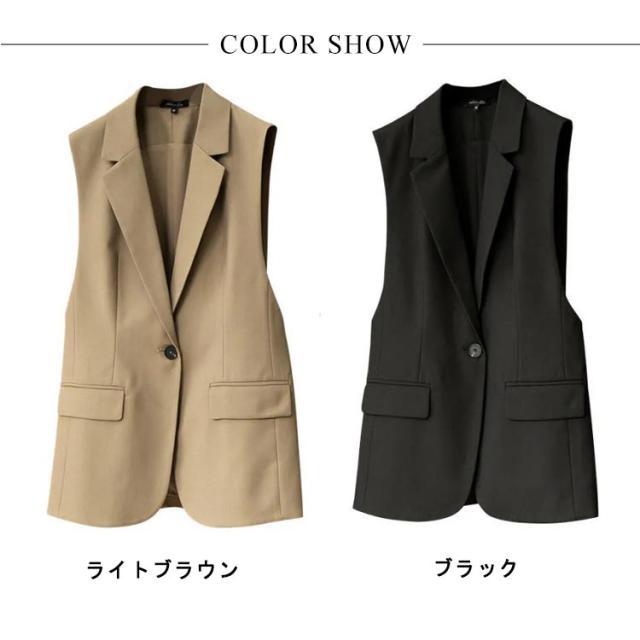 ジレ ベスト レディース 春 夏 秋 前開き ミドル丈 トップス Vネック ノースリーブ ジャケット テーラードベスト ロング 羽織り オフィス カジュアル きれいめ 体型カバー 無地 秋 冬 スーツ テーラード ベスト シンプル 着痩せ 送料無料 春夏 おしゃれ 重ね着 レイヤード