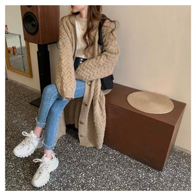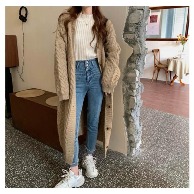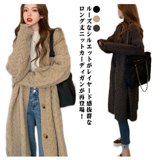 ケーブル編みカーディガン ロング丈 ニットカーディガン レディース ロングカーディガン ニット カーディガン ニットコート コーディガン ざっくり 厚手 ボタン ゆったり 体型カバー 春 秋 冬