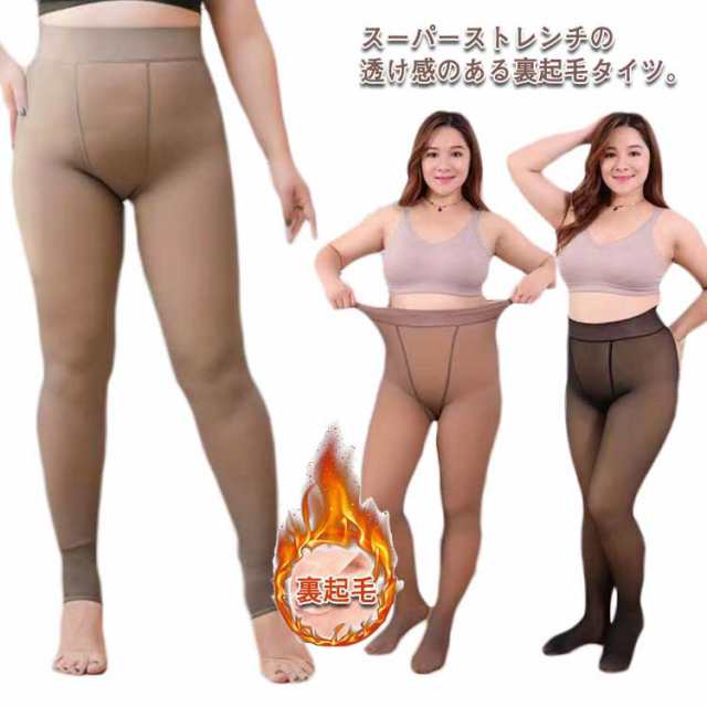 | スーパーストレンチの透け感のある裏起毛タイツ。 表には5種類の素材が混合された弾力性抜群の生地で構成されています。ウエスト、ヒップ、太もも、スネをしっかり包みます。美脚、美尻効果抜群です。 裏には足まで起毛の仕様で、ふんわりあたたかく、熱を逃しません。中の縫い部分は滑らかですっと穿けます。 秘密は特殊な加工の生地にあります。伸縮すると、内側に見えるベージュ色が変化。伸びるほどブラックが薄く、ベージュ色が濃くなって、まるでストッキングを履いている肌の色のよう。上品な透け感がオシャレさと美しいシルエットの脚ラインを演出します。 従来の二重生地の透け感タイツに比べて、こちらのタイツは二重生地ではなく、一体式デザイン、着ることも脱ぐこともしやすい、糸引っ掛けしない。優良な素材を使い、毛玉が起きにくく、足が細く見えるわりに締め付けない着用感を叶えてくれます。 就活、通勤、デート様々なシーンまで活用できる寒い季節のおしゃれに欠かせないアイテムです。体へのフィット感がバッチリ、スッキリとしたレッグラインを見せるレギンスは毎年のアイテム | |
