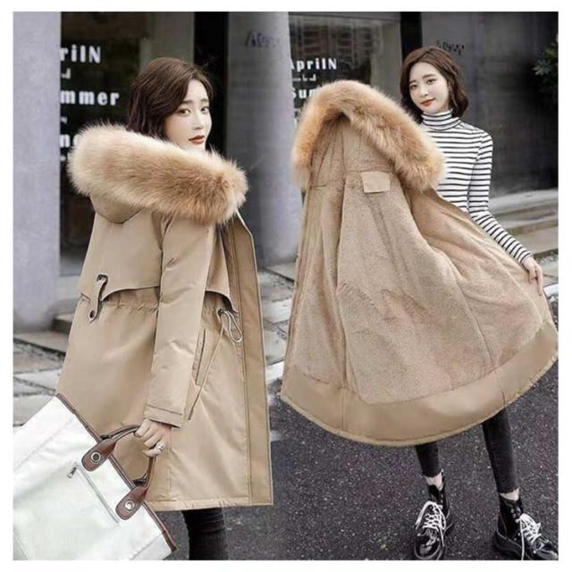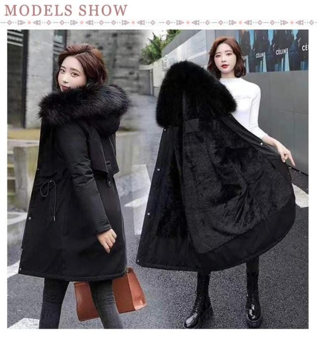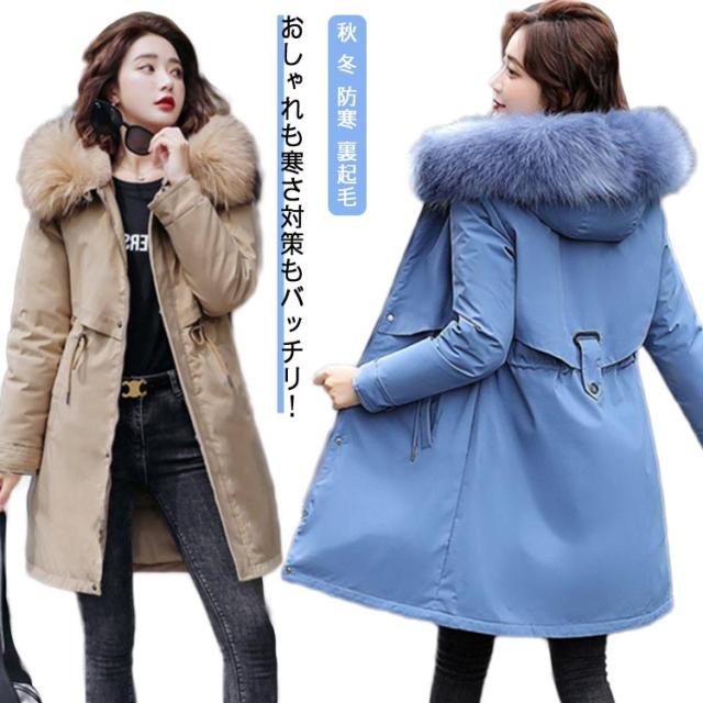 ファー付き 中綿ジャケット モッズコート レディース ロングジャケット 中綿コート 防寒 アウター フード付き 裏ボア 裏起毛 もこもこ ファーコート 秋 冬 おしゃれ カジュアル 韓国ファション M L XL 2XL 3XL 4XL 5XL 6XL