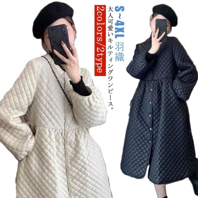 キルティング オーバー コート ジャケット アウター トップス レディース ロング ロングコート モッズコート ミリタリーコート 送料無料 ミリタリー スカート ワンピース 冬服 羽織 中綿入り 長袖 ジャンパー インナージャケット ゆったり 防寒 軽い 暖かい 秋 冬