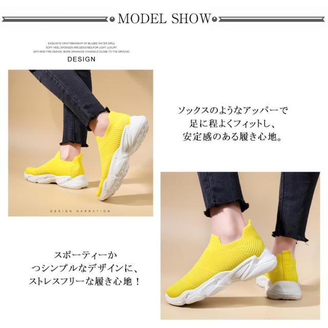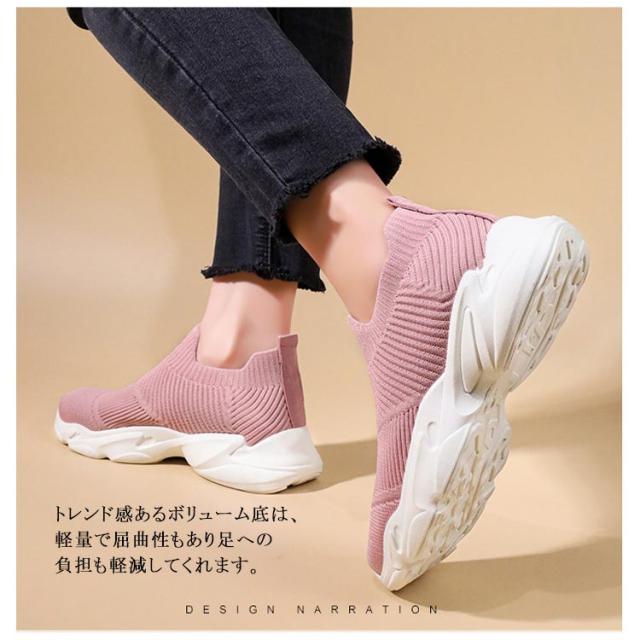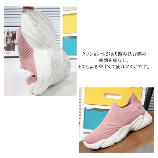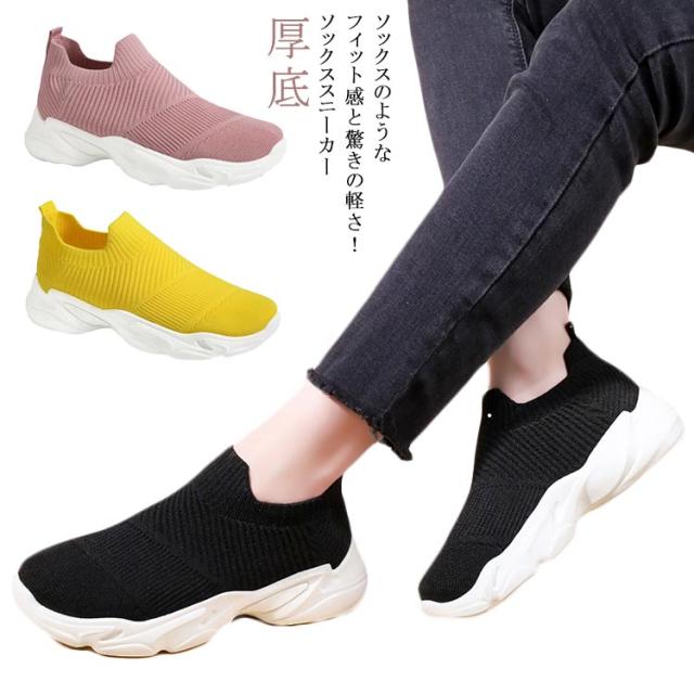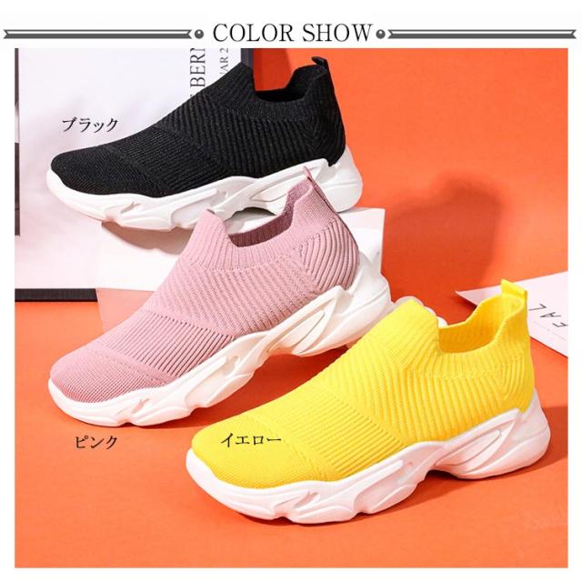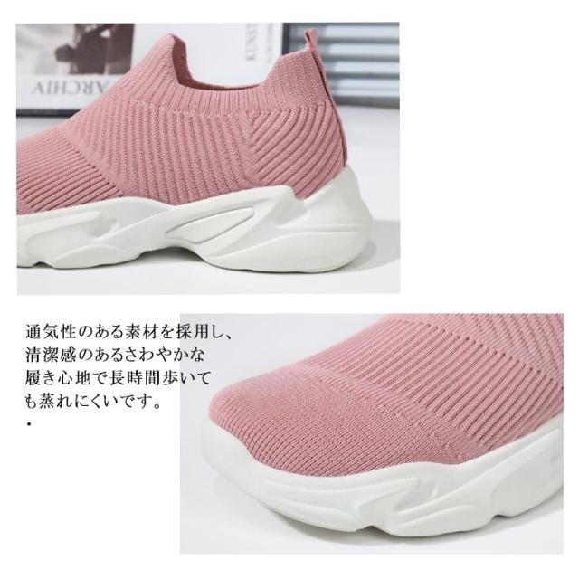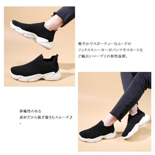 スニーカー レディース スリッポン ソックススニーカー 厚底 ニットスニーカー ジム トレーニング 散歩 ウォーキング ジョギング 通気性 軽い 軽量 歩きやすい 疲れない 女子 学生 おしゃれ かわいい 運動 通勤 通学 春 夏 秋 無地 全3色