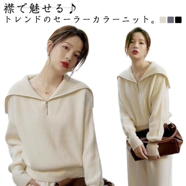 セーラーカラーハーフジップニット セーラーカラーハーフジップニット セーラーカラー ハーフジップ セーター 無地 長袖 プルオーバー ビッグカラー ハイネック 2WAY ジップ襟 おしゃれ 春 秋 冬