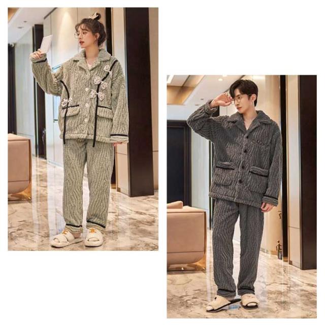 | ふわふわで優しい手触りのもこもこボアパジャマ。 冬でもほかほかあたたかく快適に過ごせます。 前ボタンタイプなので、脱ぎ着がしやすく締め付け感がありません スマホや小物を入れておくのに欠かせないポケット付きなのも嬉しいポイント。 ゆったりとしたシルエットにウエストゴム仕様で、リラックス感のある着心地。" 家族や彼氏、パートナーと色柄違いのペアルック、お友達や恋人へのプレゼントにも喜ばれます。 | |