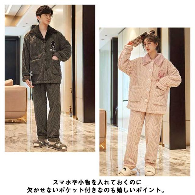 ルームウェア パジャマ 上下セット 男女兼用 冬 ふわふわ もこもこ ボア 起毛 部屋着 メンズ レディース 長袖 ナイトウェア 前開き おしゃれ 寝間着 ロングパンツ 冬 秋 あったか 防寒 暖かい 寒さ対策 リラックスウェア ペア 大きいサイズ 可愛い ギフト プレゼント