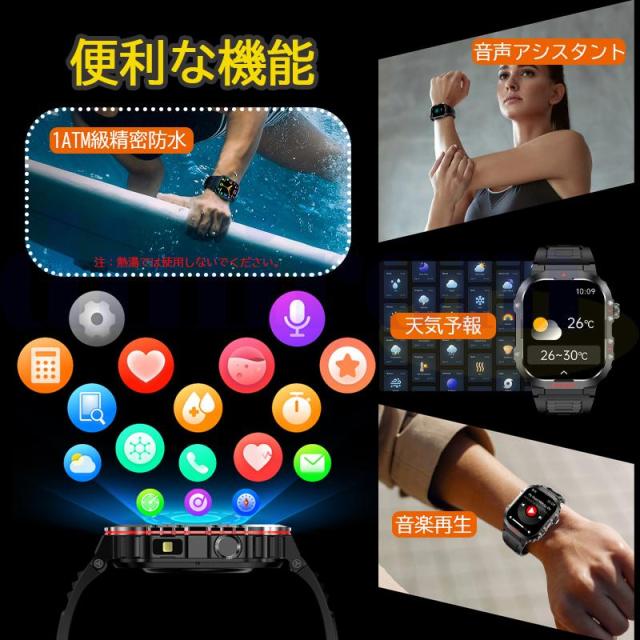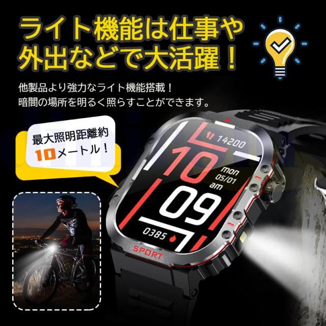 スマートウォッチ 軍用規格 血圧測定 血中酸素 心拍数 懐中電灯 通話機能 GPS運動記録 ATM防水 着信通知 長持ちバッテリー 健康管理 スポーツウォッチ ギフト