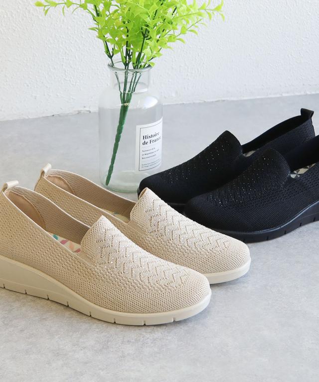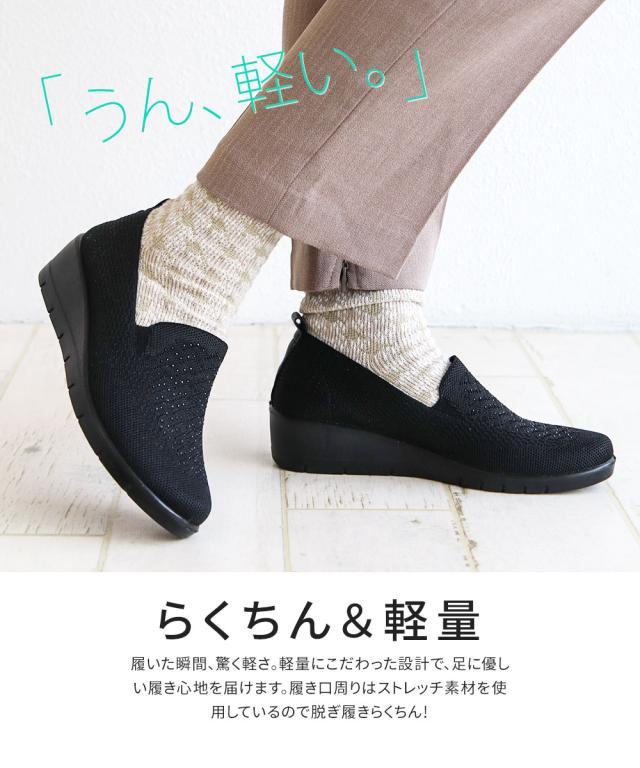 コンフォートシューズ レディース おしゃれ カジュアル パンプス 痛くない 柔らかい スリッポン ニットシューズ ミセス 女性 ウエッジソールパンプス ウェッジソール 厚底 カジュアルシューズ 歩きやすい 軽量 軽い ストレッチ 屈曲 通気性 黒 ベージュ 457