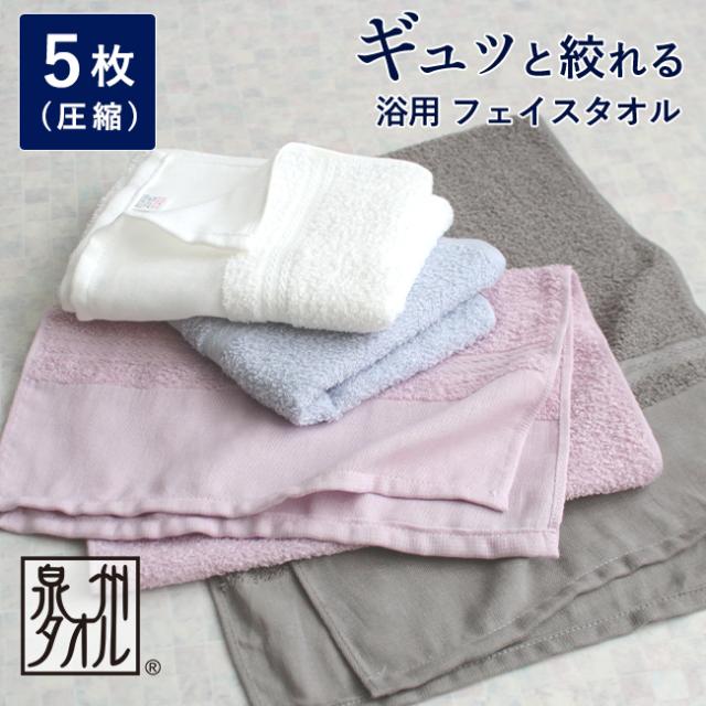 浴用タオル 5枚セット フェイスタオル 泉州タオル 薄手 圧縮 温泉タオル 白タオル 日本製 タオル まとめ買い 綿100% 34×83cm お風呂 銭湯 キッチン 白 薄手 速乾 絞りやすい 乾きやすい 新生活 薄い 無地 部屋干し 着物 補正 浴衣 グレー ホワイト ピンク ブルー syf