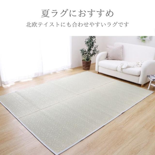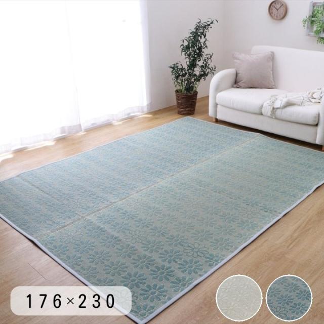 NSコチ い草 い草ラグ カーペット 花柄 北欧 リビング 裏貼り ずれにくい ブルー ナチュラル かわいい 夏 涼しい ラグ 176×230cm