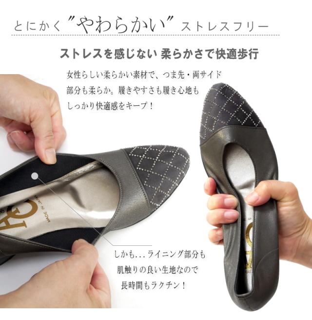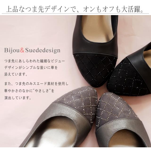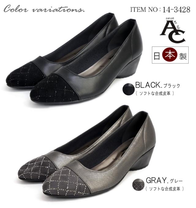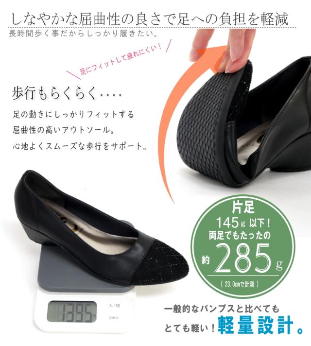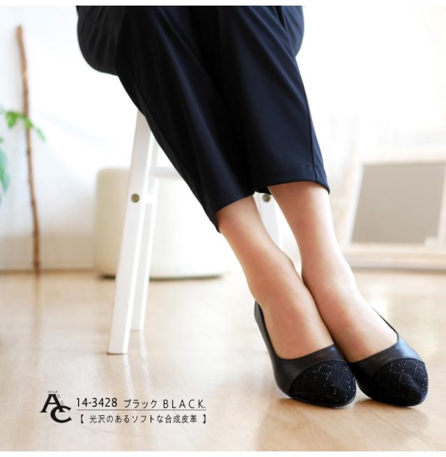 パンプス 結婚式 お呼ばれ 痛くない 柔らかい 疲れない 黒 靴 レディース 歩きやすい 日本製 軽い AC アミュエルコンセプト ビジュー アーモンドトゥ ウエッジ 屈曲 卒入学 仕事 通年 3e