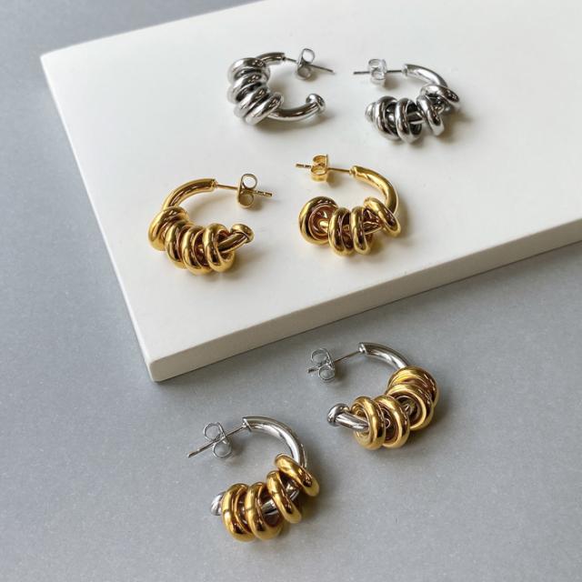 送料無料 C型リング付ステンレスフープピアス ピアス フープピアス シルバー ゴールド サージカルステンレス 金属アレルギー対応 つけっぱなし バイカラー コンビカラー MIX ミックスカラーレディース