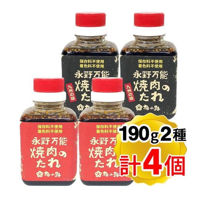 梅小路 永野 万能焼肉のたれ 2種 各190gx2個ずつ 計4個セット アソート 保存料不使用 着色料不使用 黒ラベル 赤ラベル