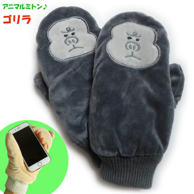 送料無料 手袋 ミトン てぶくろ ゴリラ gorilla 男前 イケメンゴリラ ごりら ぬいぐるみ 裏ボア アニマル ふわふわ パペット かわいい 耳つき スマホ クリスマス プレゼント ギフト レディース モコモコ 指切り 指が出せる 通勤 通学 防寒 シャバーニ